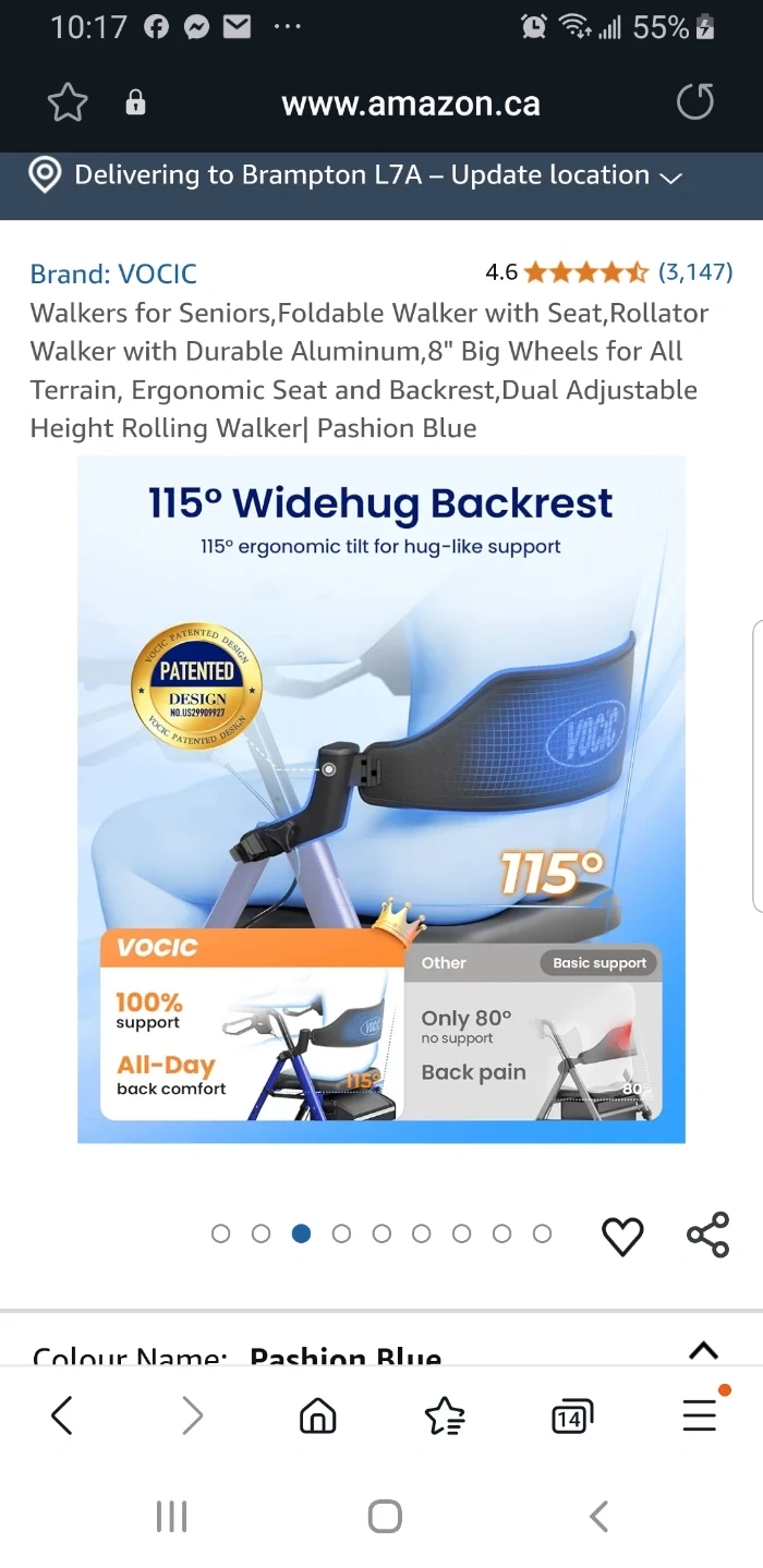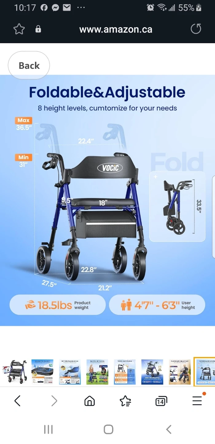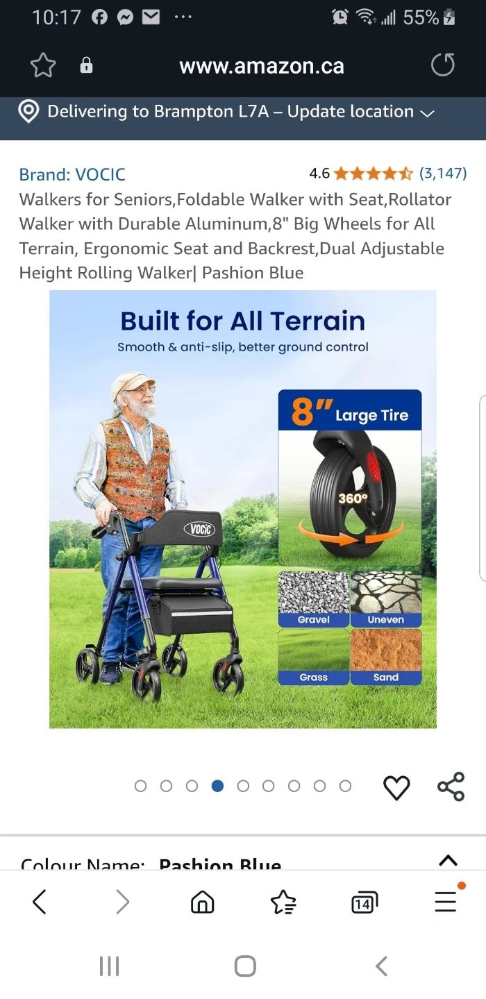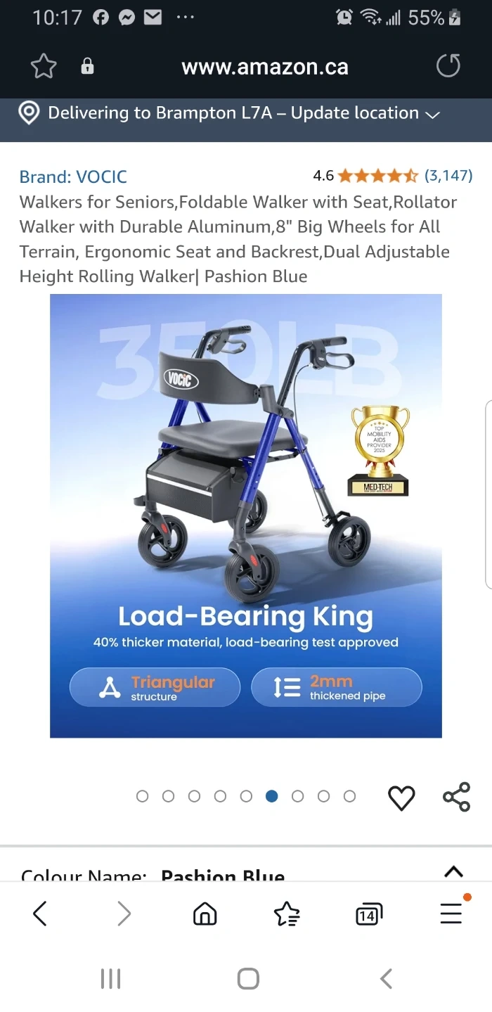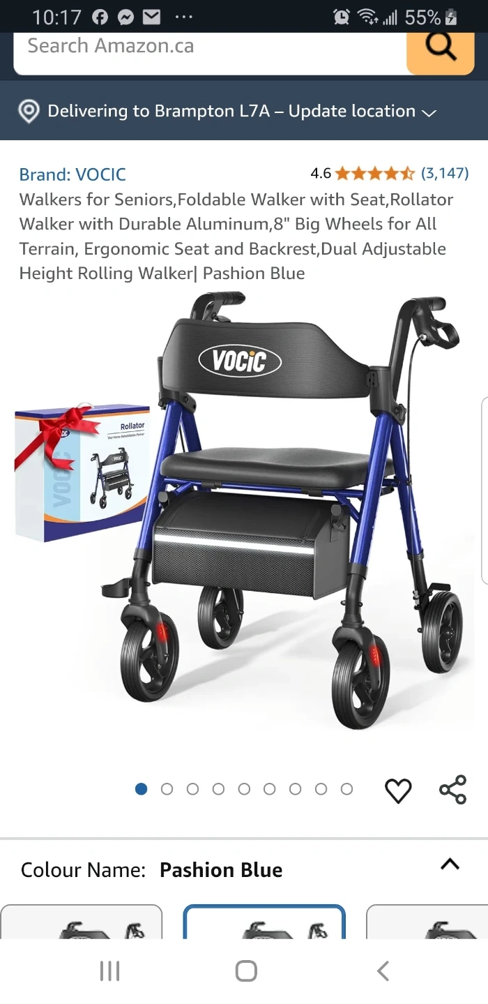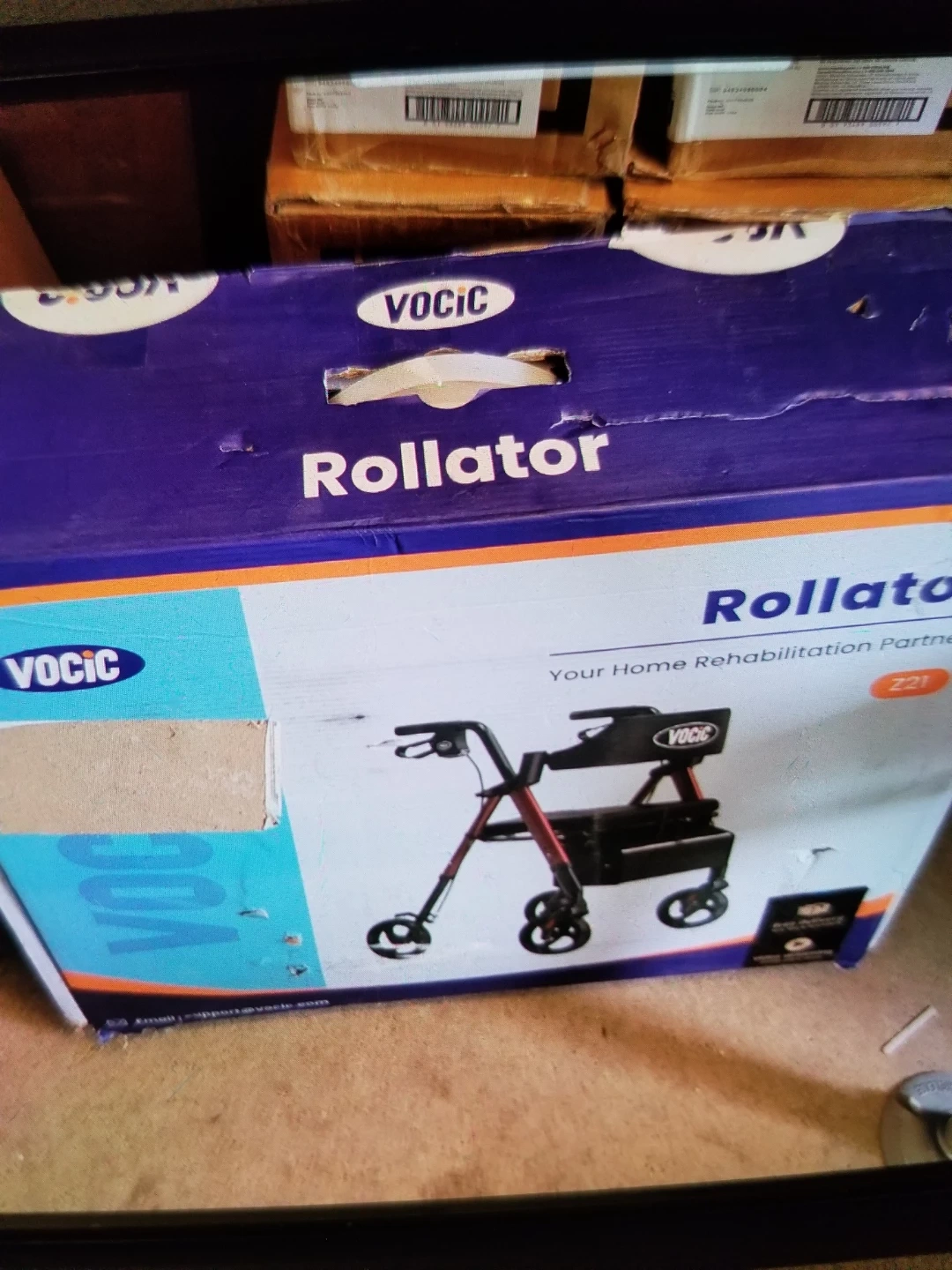 Rollator Walker brand new in box Easy to assemble please note there is a very small wear spot on under side of seat, not noticeable and does not affect use Xp pick up Bovard and Dixie area of Brampton Vocic rollator