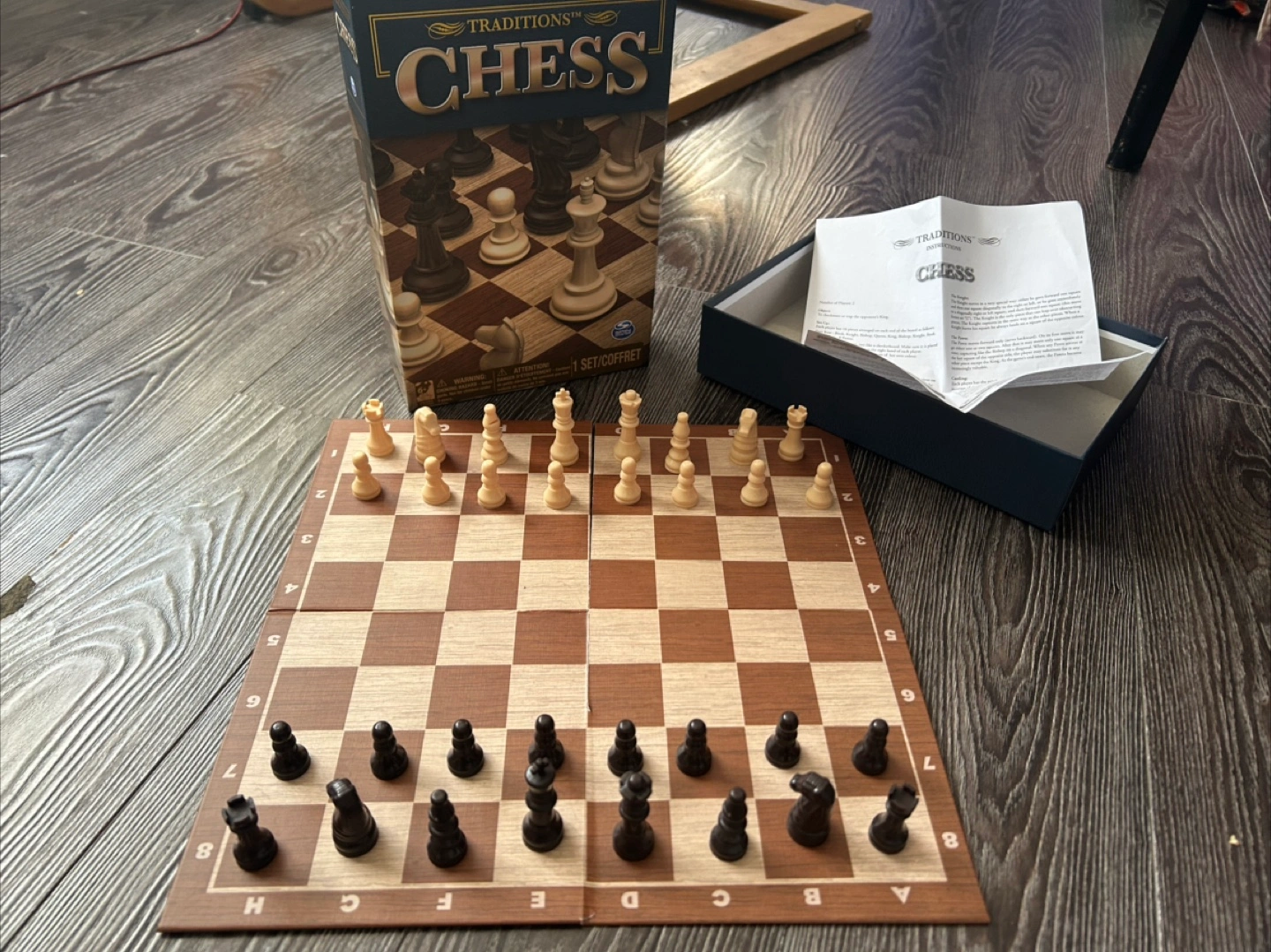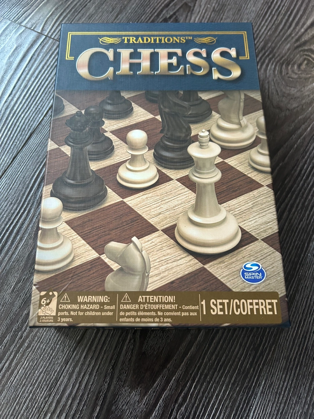 Traditions chess game. Board made by spin master. Folding chess board still in great condition. Pieces are plastic. All pieces are still there. Original instructions included. Cash or e-transfer only. Sorry no refunds . Payment to be made at pick up. Pick up place is 200st Langley the A&W