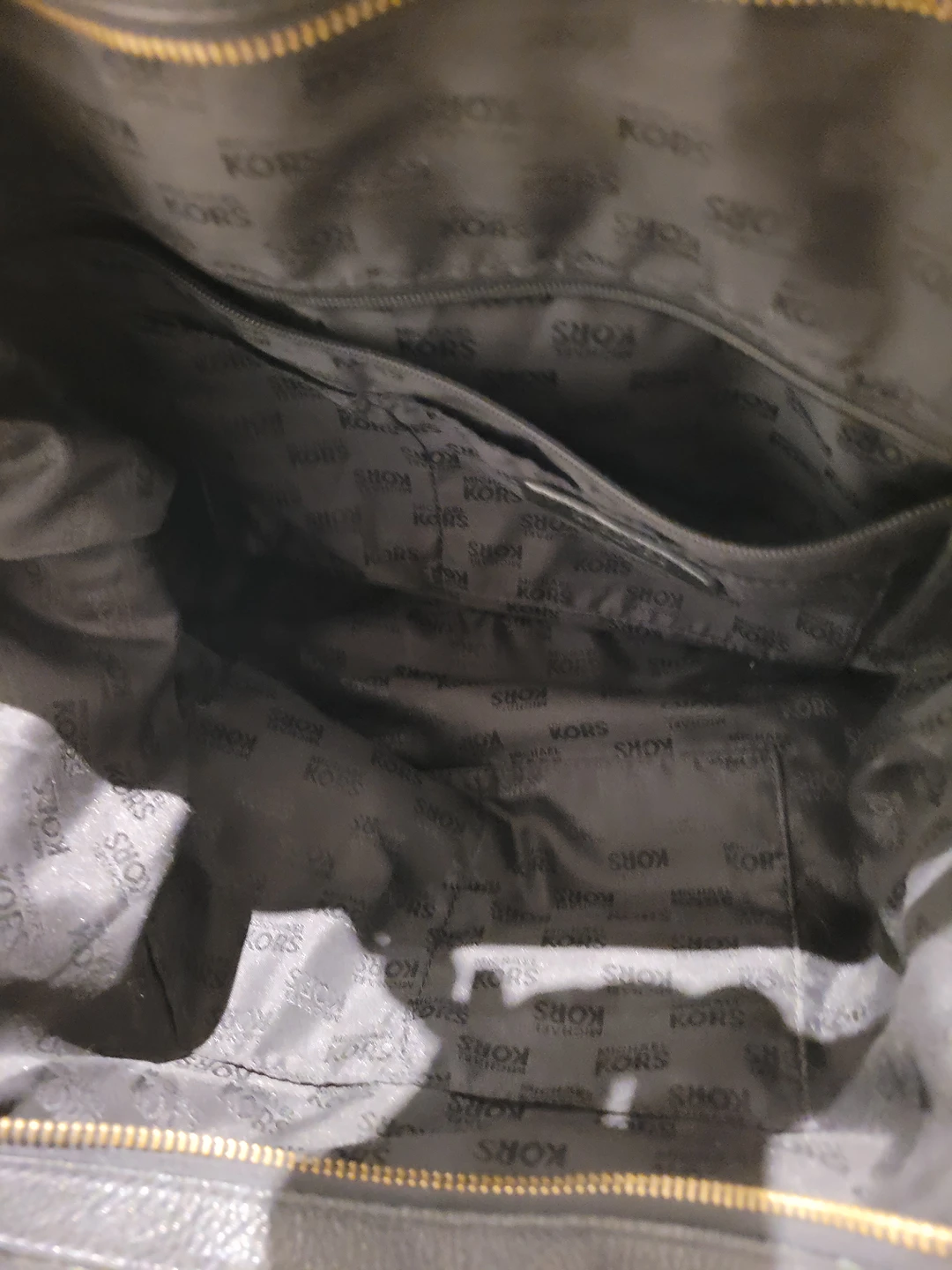 Black leather Michael Kors large size satchel. side clips to change the shape to a more rounded edge if preferred. No rips or tears.
