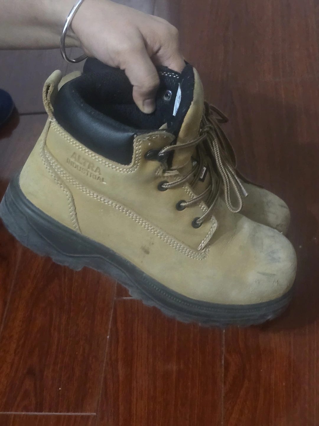 Tan steal toes work boots.Durable soles. Pre-owned. I wear it for 3 months. Very good condition. Unisex