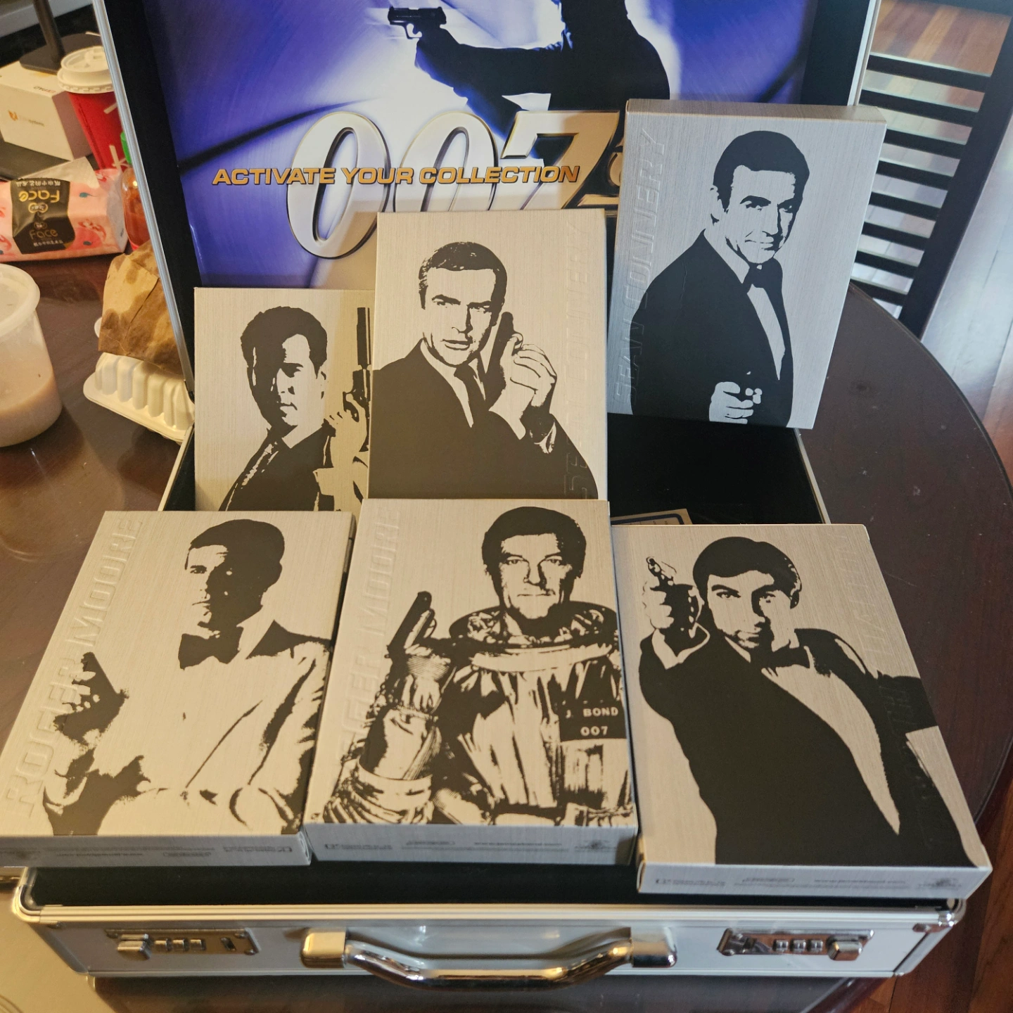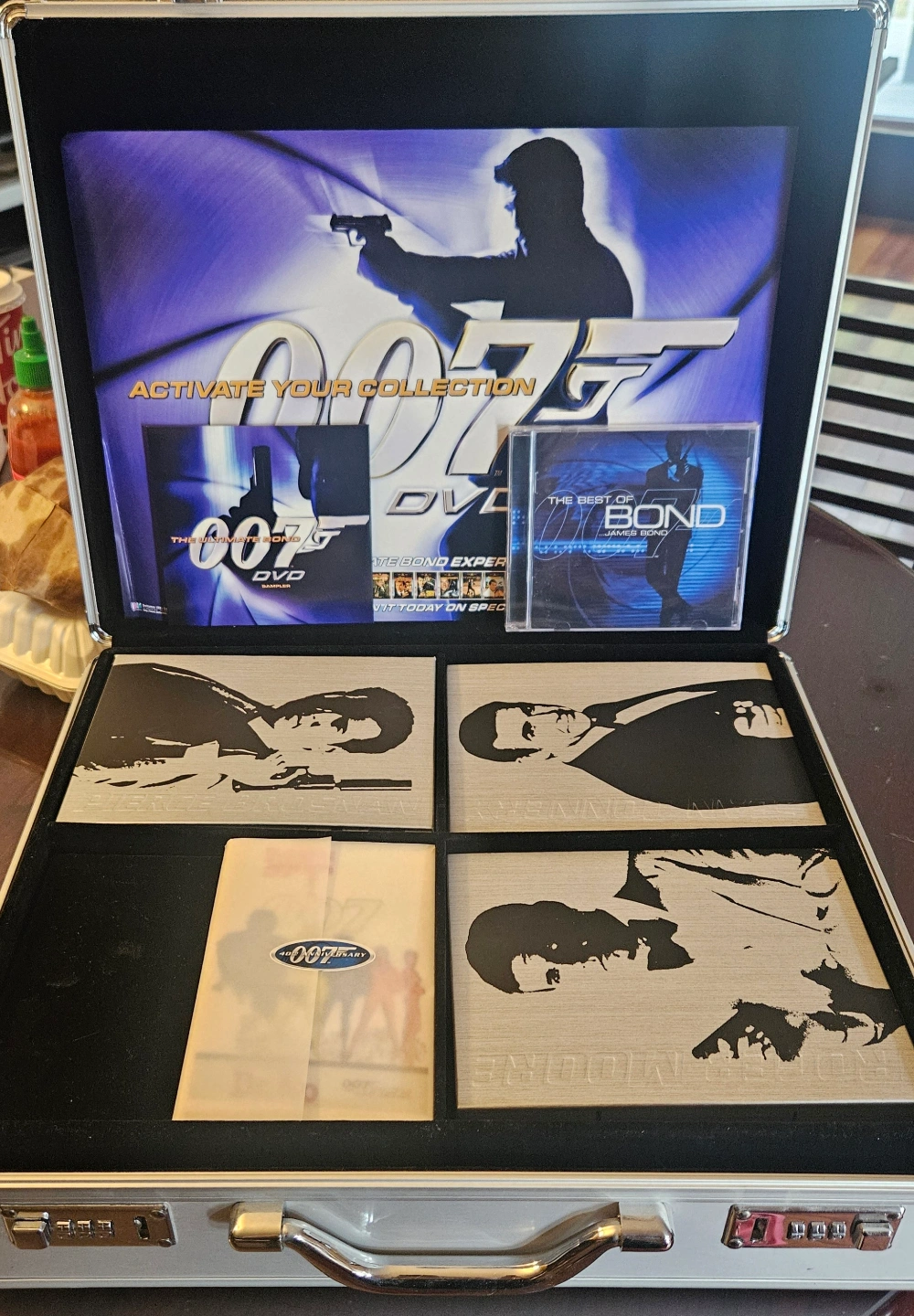 Complete James Bond 007 DVD collection. Silver aluminum carrying case. Includes several DVDs and a CD. Great for collectors.