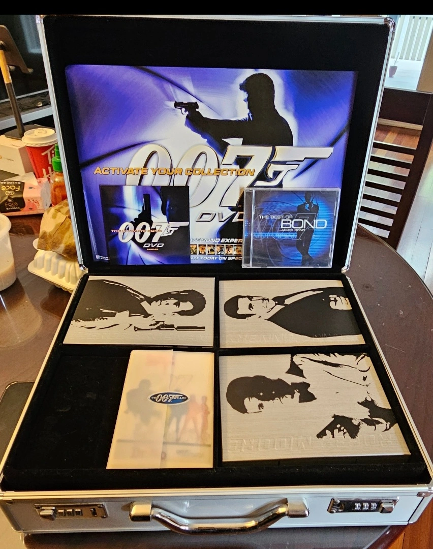 Complete James Bond 007 DVD collection. Silver aluminum carrying case. Includes several DVDs and a CD. Great for collectors.
