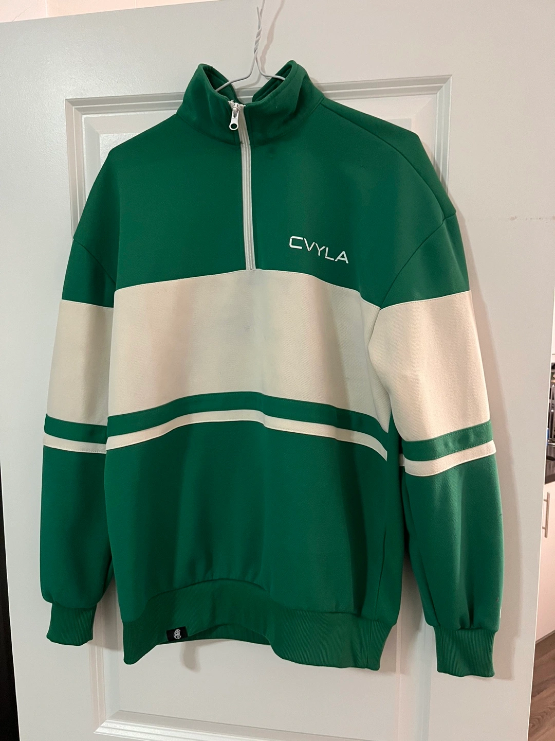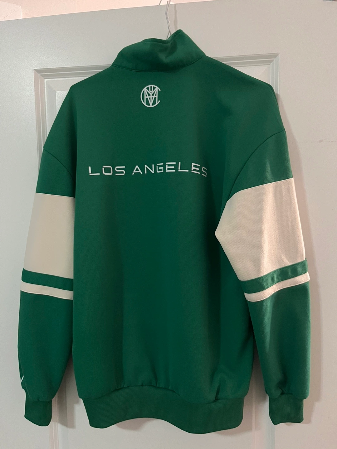 CVYLA x LAFC Green Half-Zip Track Top Green and off-white colour block half-zip track top. Features embroidered CVYLA logo on the front and LAFC logo on the back. Long sleeves. Relaxed fit.