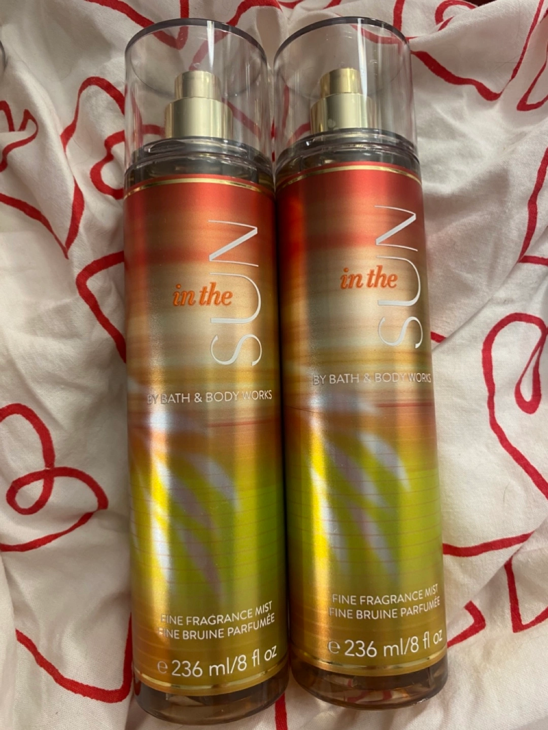 Two bottles of Bath & Body Works In The Sun Fine Fragrance Mist. 236ml / 8 fl oz each. New. $10 for both or $5 each