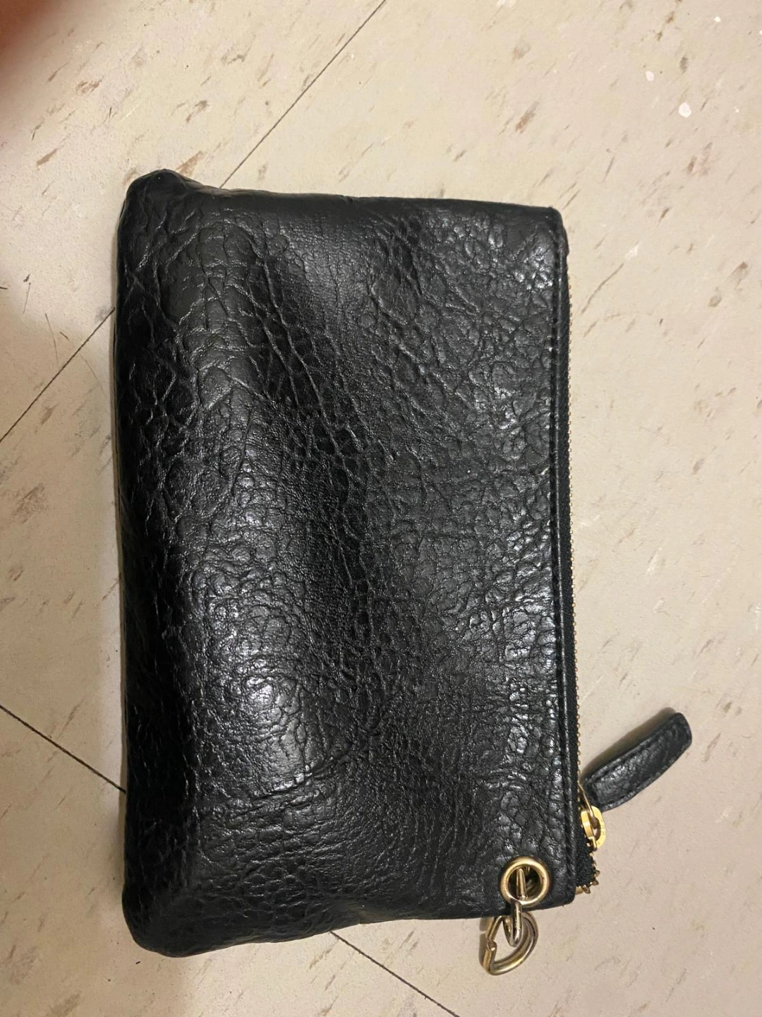 Four different cosmetic bags. Two feature floral prints, one has a paisley pattern, and one is plain black. Various sizes and styles. Good for travel or everyday use.