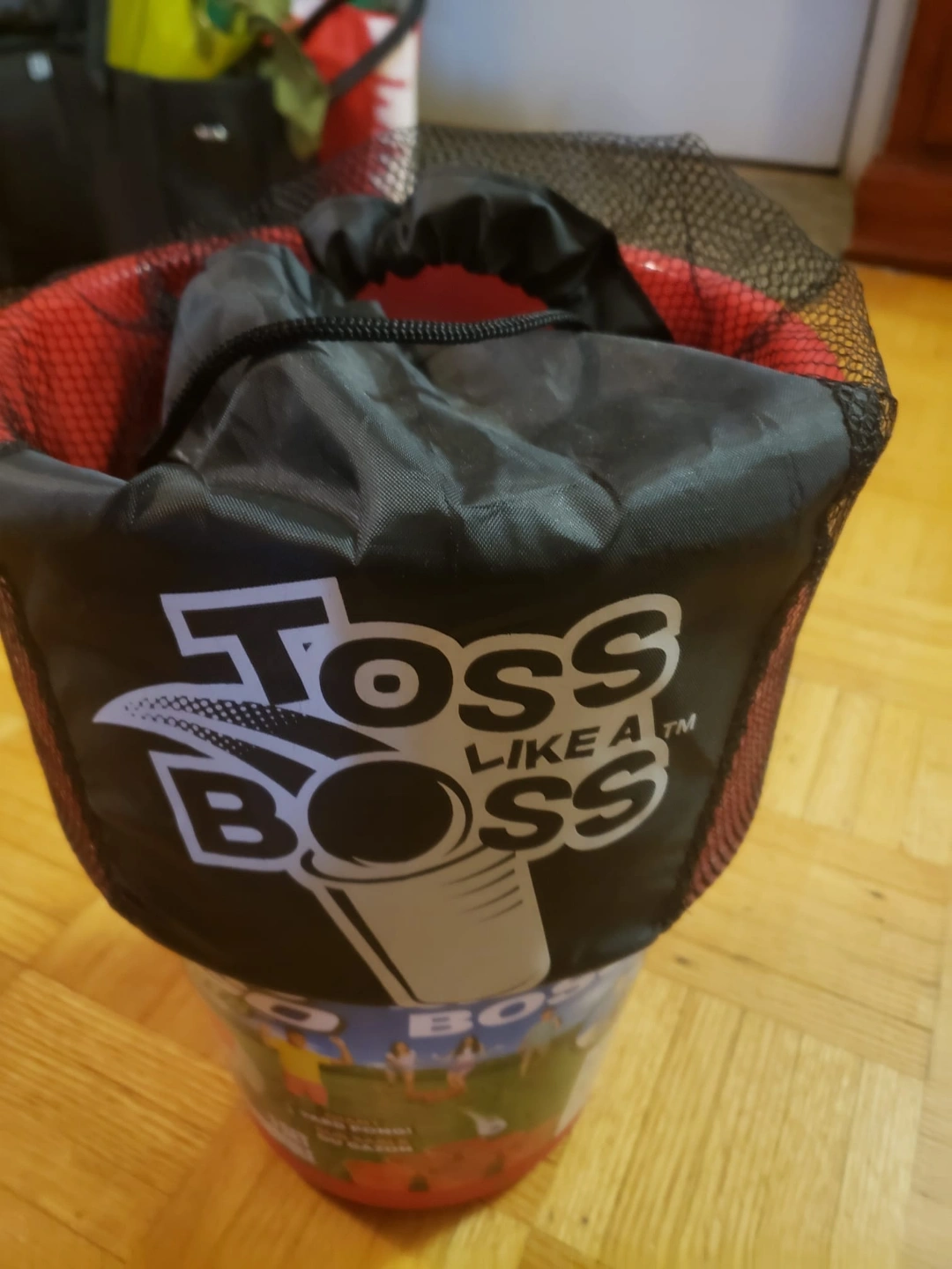 Portable lawn game. Includes bucket, balls, and carrying bag. Great for parties and outdoor fun.