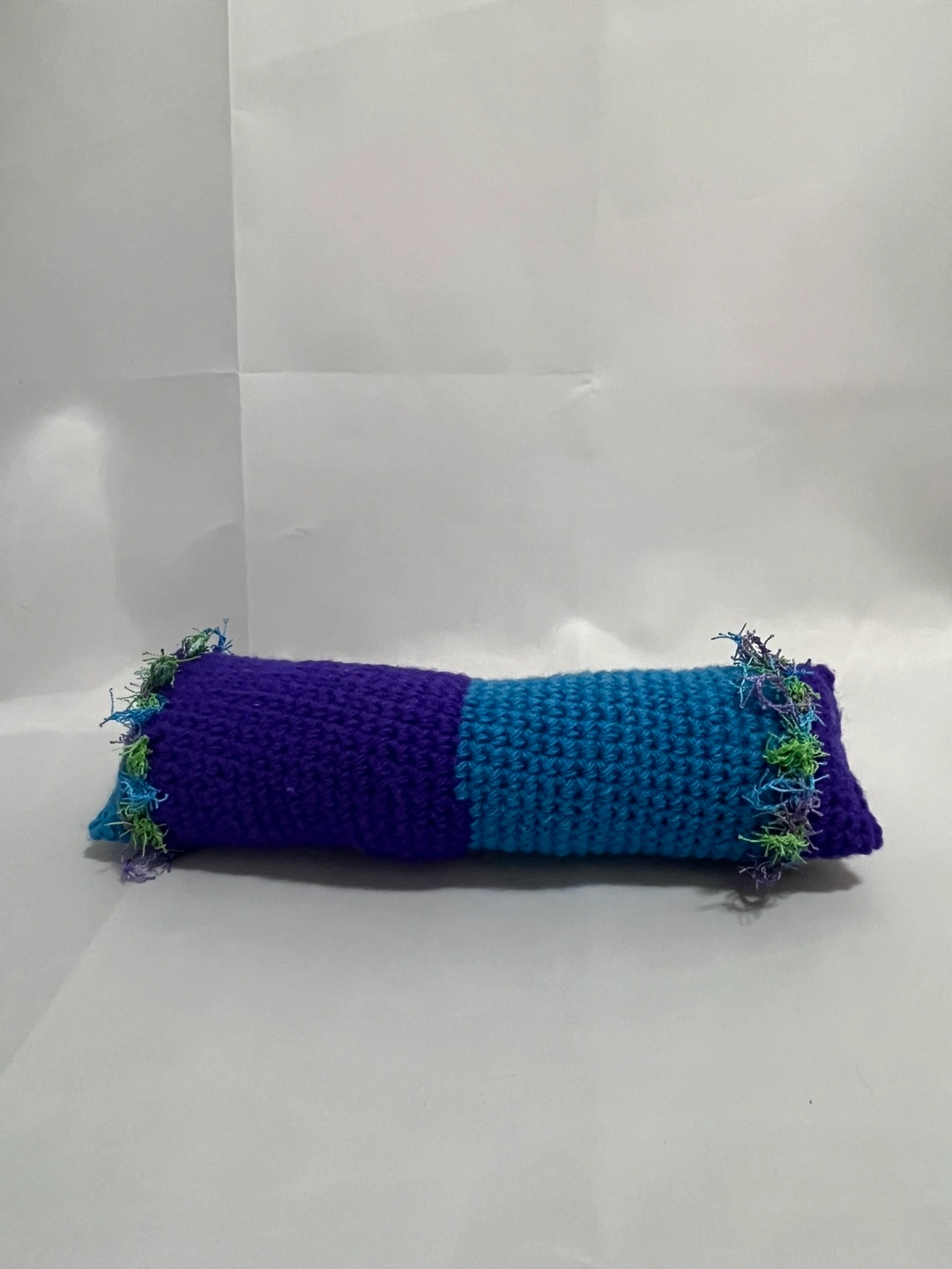 Hand crafted cat toy pillow, great for cuddling and bunny kicks! Made with a wool/cotton blend, has a little pocket and satchel to put catnip(already included)! (Remove before washing on gentle/cold wash) Measurements: 11 in long, 3 in diameter. Made with love by my mother, selling on her behalf. Only a select amount available! **CHECK OUT MY PROFILE FOR MORE DESIGNS & SIZES!** Bundle deals available on multiple purchases, just ask! LOCATION: for pickup in Parkdale near King St W and Jameson Ave.