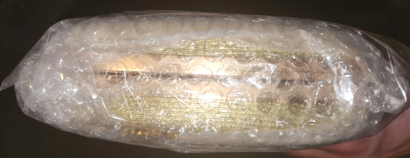 BRAND NEW, SEALED PACKAGE WITH BUBBLE WRAP!!! Strap included inside clutch. One side of clutch is gold glitter and other side is solid metallic gold. $50 Cash Only. Pickup Only. CHECK OUT MY OTHER ADS!!