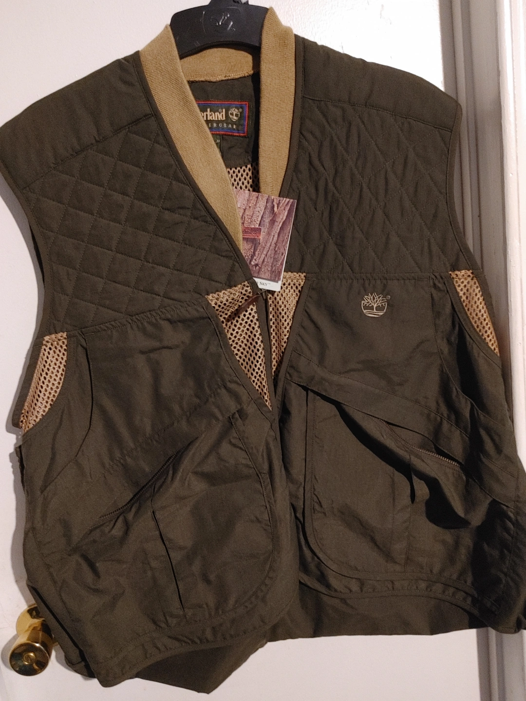 💚TIMBERLAND HUNTING, FISHING CASUAL VEST. 💚BRAND NEW WITH TAGS. 💚VINTAGE FROM THE 1995 TIMBERLAND COLLECTION! JUST HAS BEEN IN STORAGE! 💚MENS LARGE 💚OLIVE GREEN WITH TAN TRIM 💚GREAT GIFT FOR FATHERS DAY OR A GIFT FOR YOURSELF. 💚I AM LOCATED IN THE YONGE AND STEELES AREA FOR PICKUP