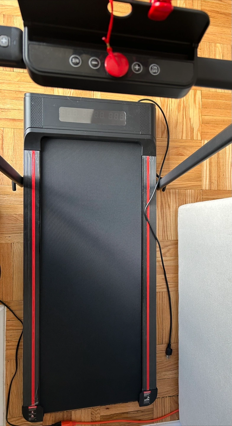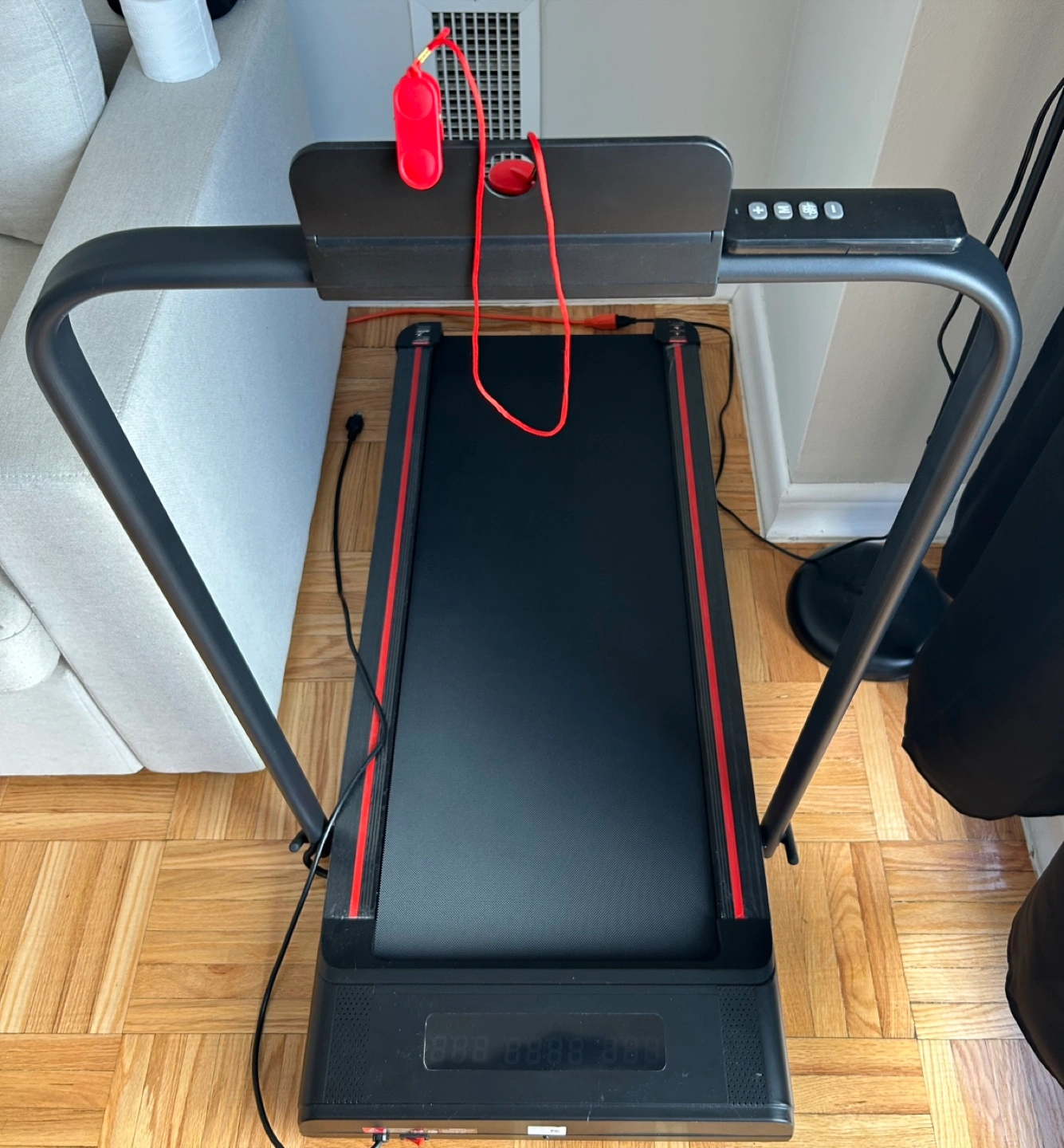 Almost new! Used 3 times. Purchased in Feb 2025 on amazon for over $300 Compact and foldable treadmill. Perfect for home use. Features a digital display and safety clip. Enjoy convenient workouts. Remote control included. Pick up Yonge and Lawrence.