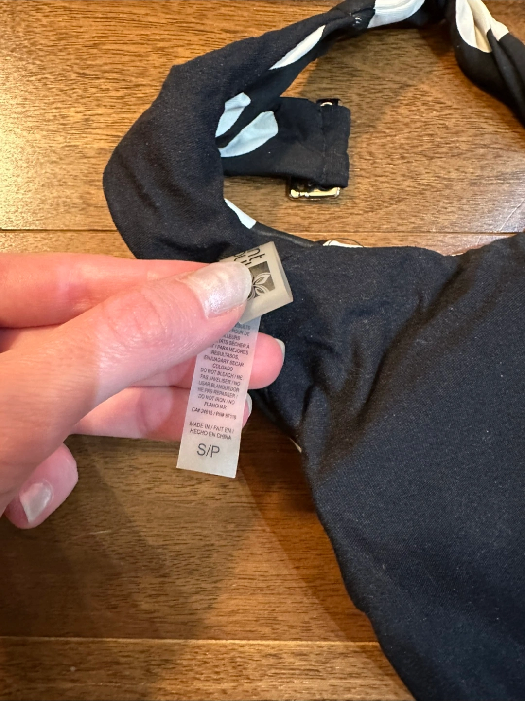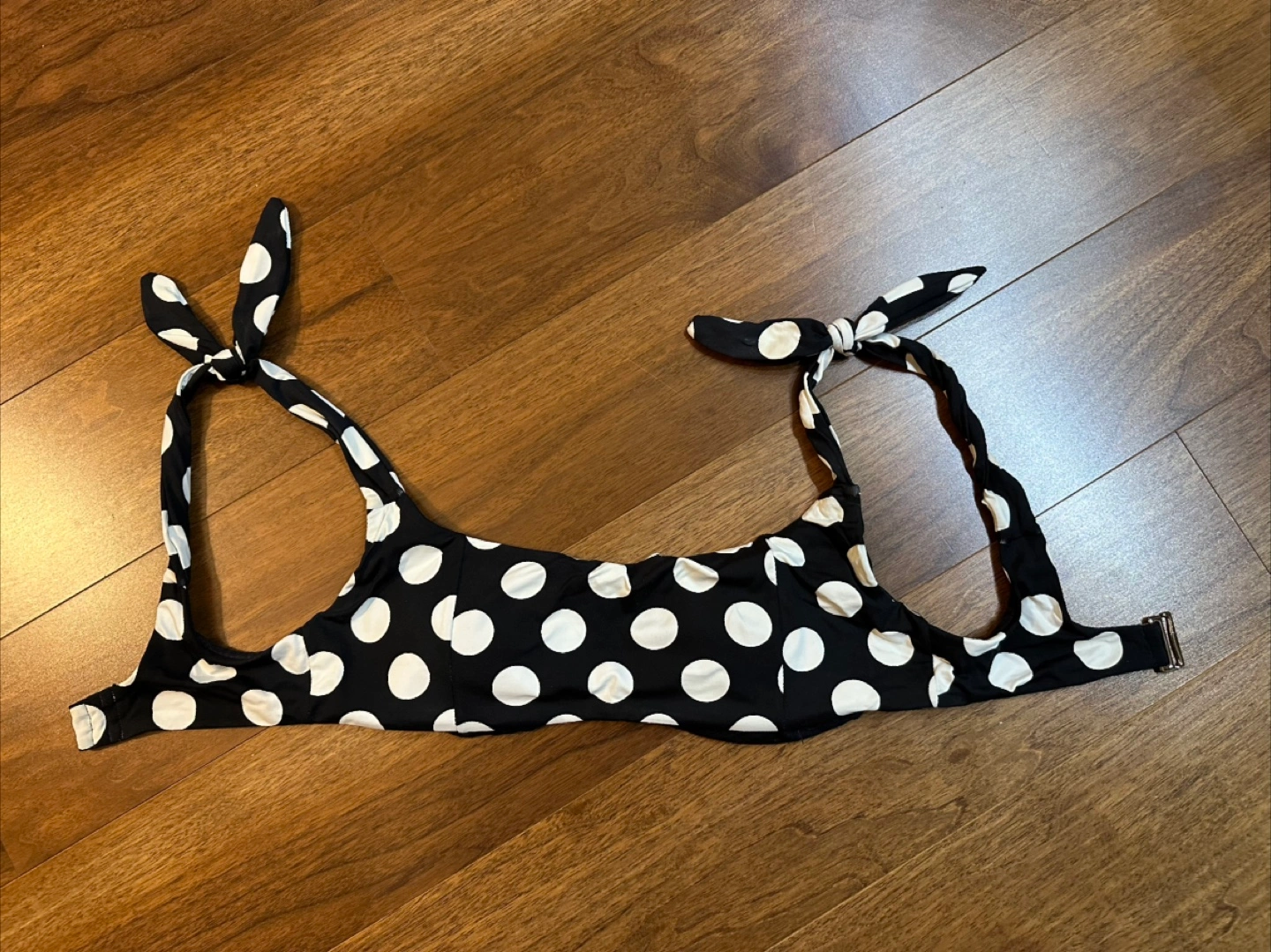 Black with white polka dot bikini top Adjustable straps Clip closure Cups Size small