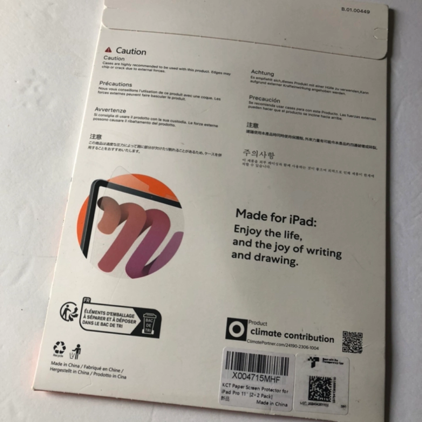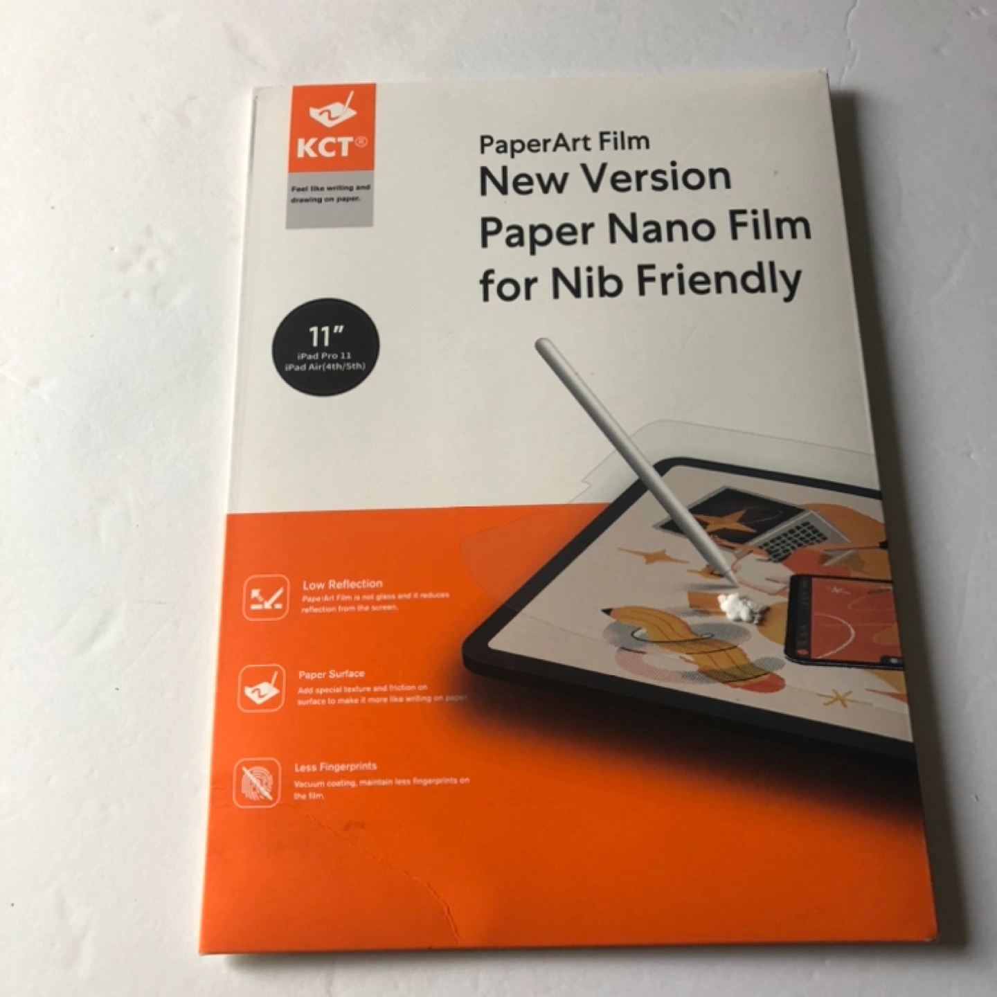 New 11" Paper Nano Film screen protector. Low reflection, paper surface, and less fingerprints. Nib friendly. Made for iPad. Includes application tools.