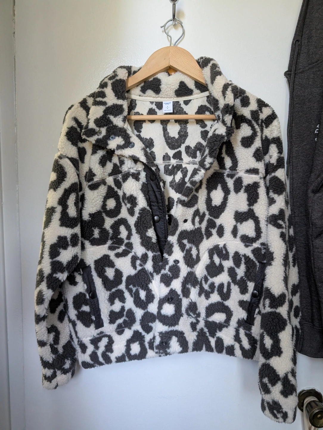 Women's size small Old Navy Active leopard print fleece jacket. Soft and cozy. Button closure. Great for layering. *cash only