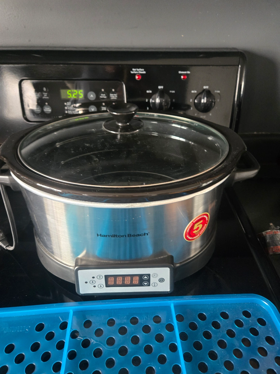 Stainless steel slow cooker. Digital controls. Includes glass lid. Good condition. never been used