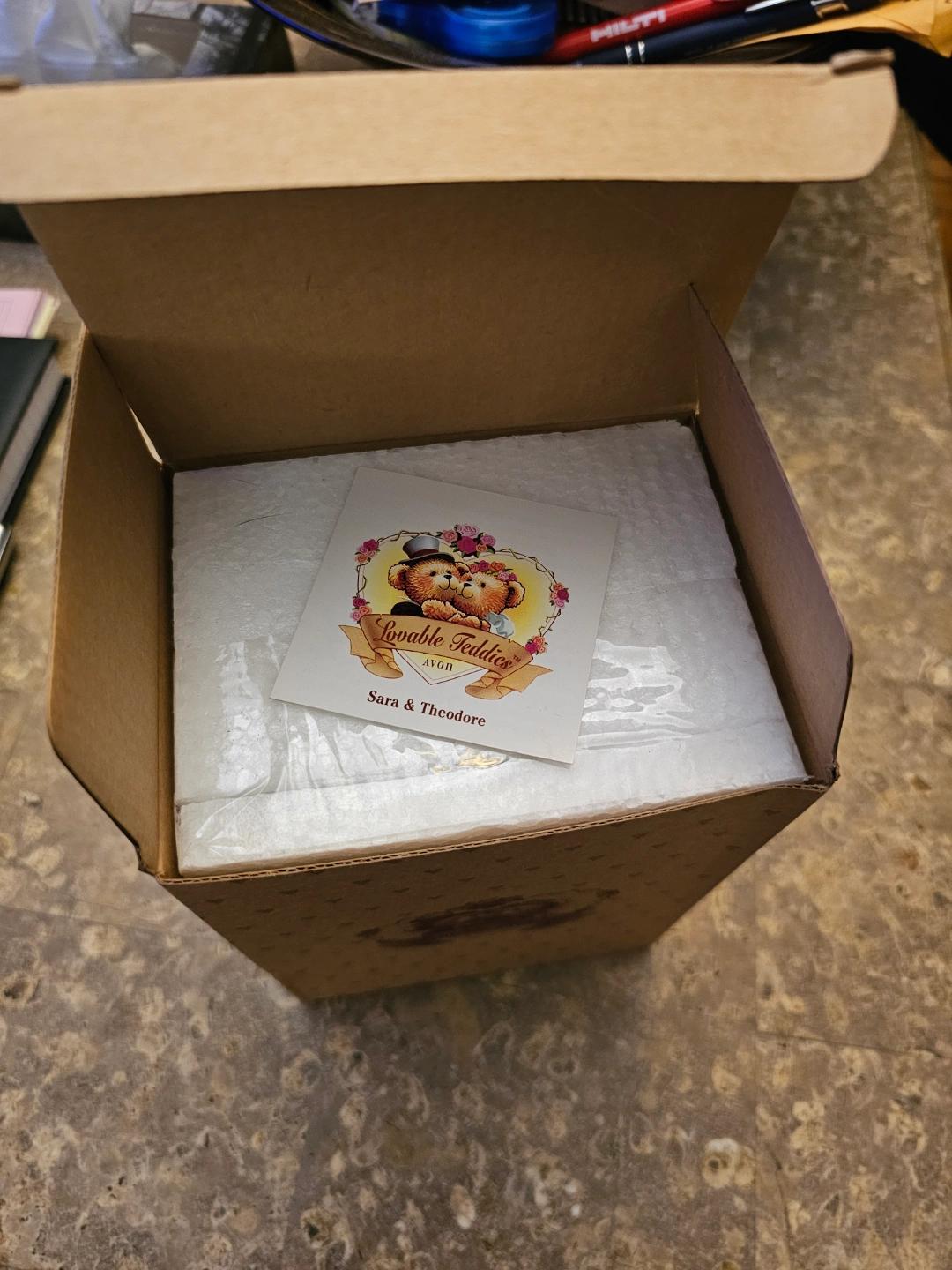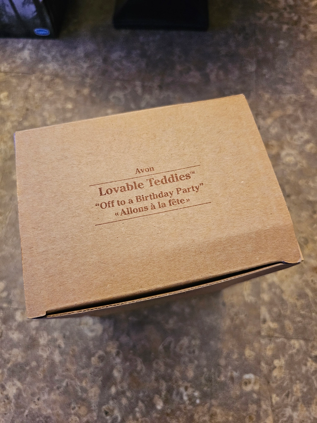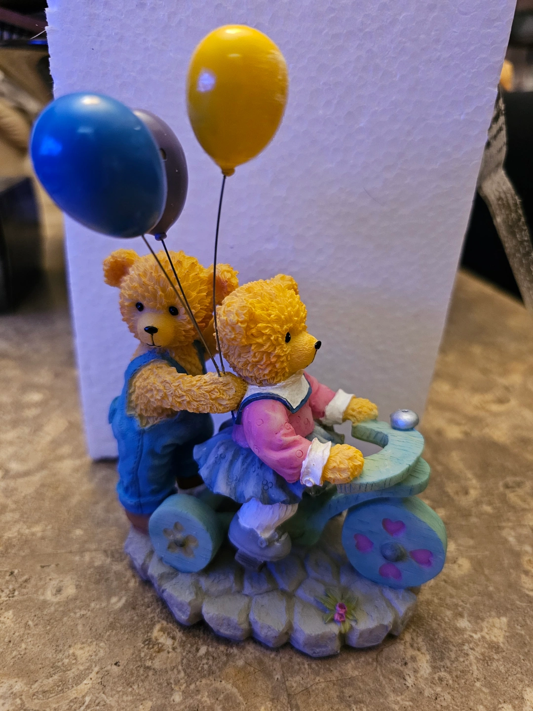 Adorable Avon Lovable Teddies figurine. Two teddy bears ride a tricycle with balloons. Collectible item. Made in China.