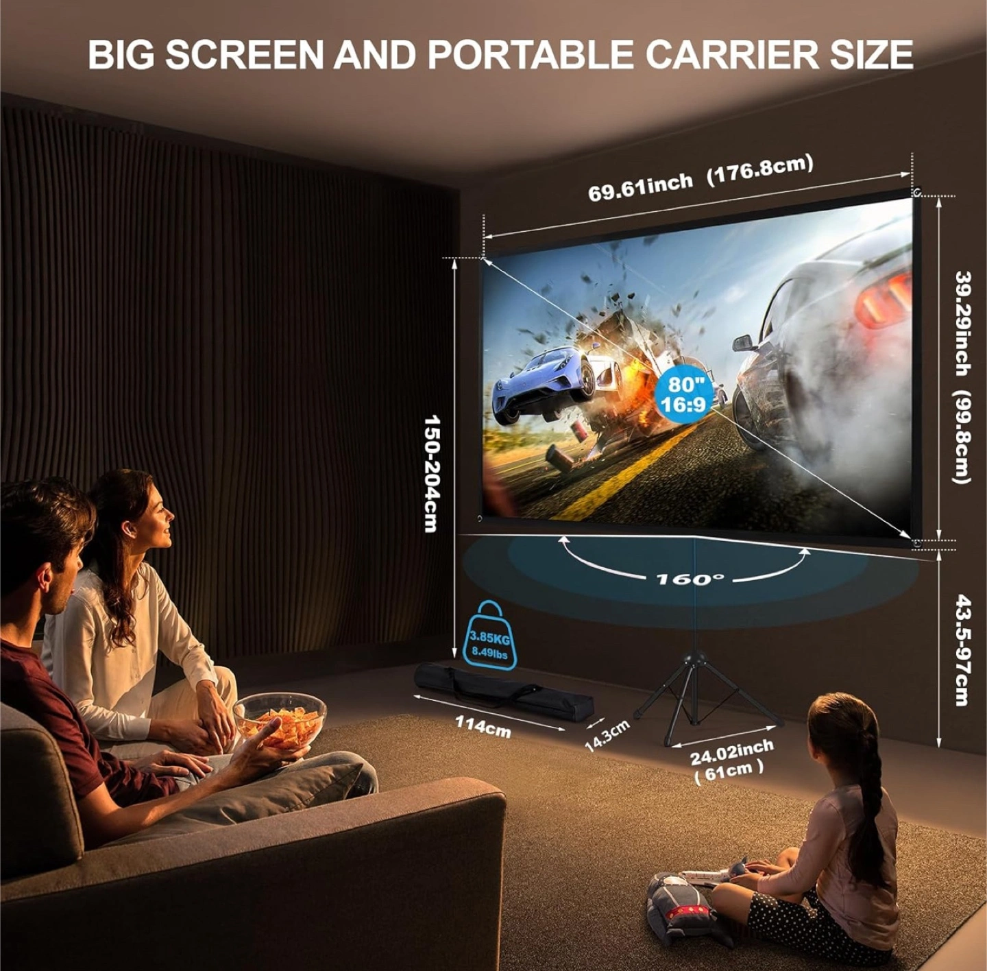 Small Portable Projector Screen with Tripod Stand – 80 Inch 🛠 Condition: Open Box – Excellent condition, ready for use! Features: • 80-Inch Display: Perfect for movies, presentations, or gaming. • Tripod Stand Included: Quick setup and stable support. • Portable & Lightweight: Easy to carry and set up anywhere. • Matte White Screen: Enhances image clarity and reduces glare. Ideal for home theaters, business meetings, and outdoor movie nights! 📦 Pickup available or shipping upon request! Message me to grab this deal before it’s gone!