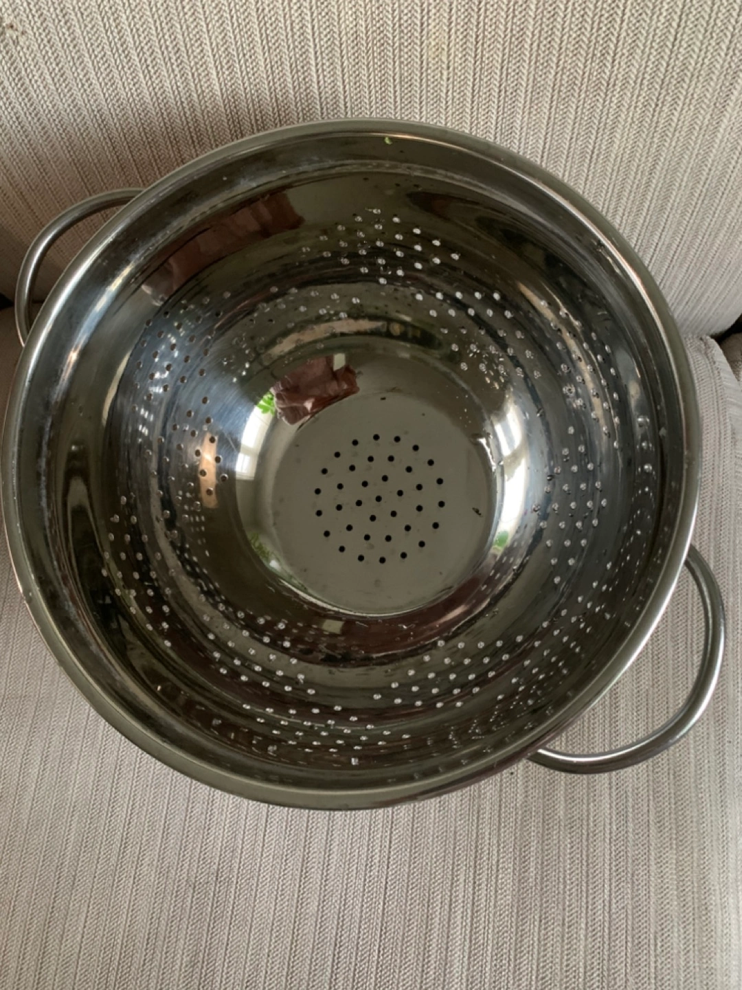 Large stainless steel steamer basket. Features two handles and numerous drainage holes. Approximately 27 cm diameter. $2 each