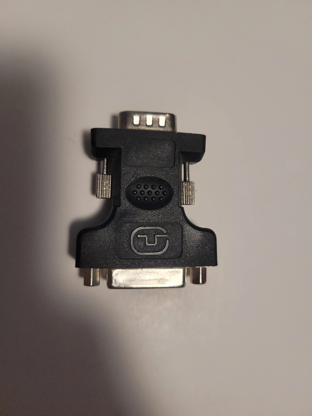 Used VGA to DVI adapter. Connects a VGA output to a DVI input. Small and compact design. Good condition.