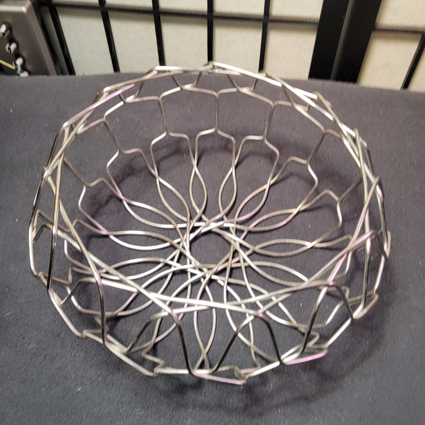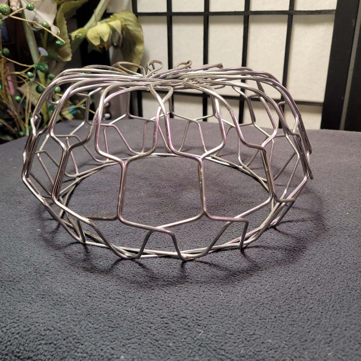Unique vintage wire fruit bowl. Silver-toned metal. Intricate design. Adds a touch of mid-century modern to your home decor. I have too many decorative bowls.
