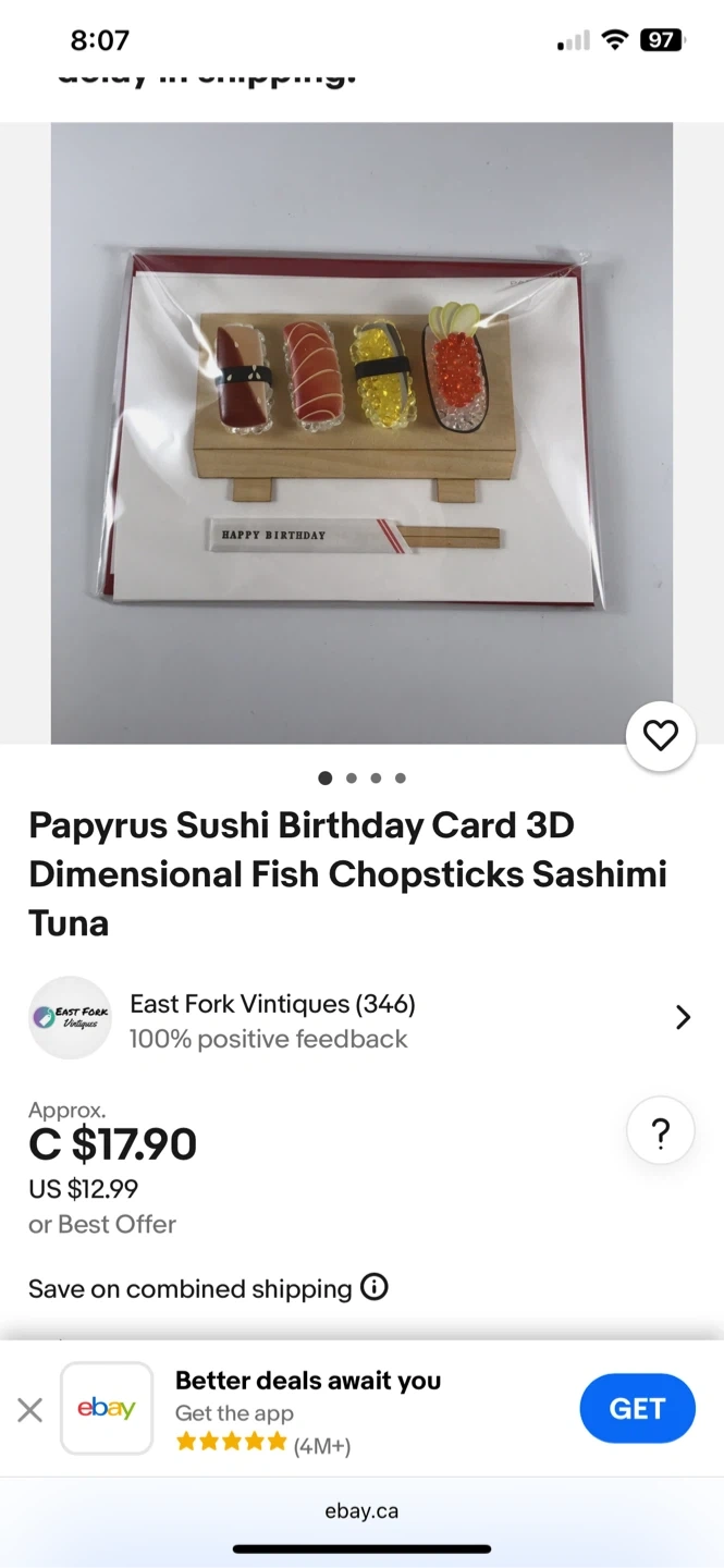 Set of 2 cute 3D Sushi Birthday Cards from Papyrus, selling price for one card on ebay is $18 but this amazing deal gets you two cards for only $15. Both cards are new. A great gift for sushi lovers! ♥️CHECK OUT MY OTHER LISTINGS!!