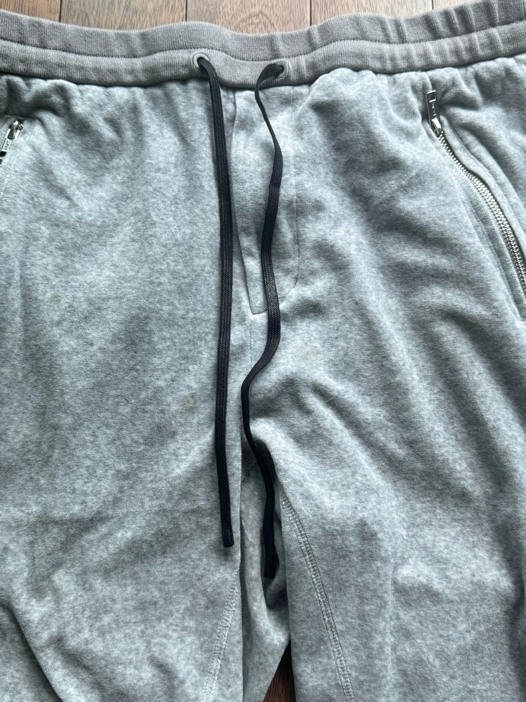 Grey sweatpants. Size medium. Features zippered pockets and drawstring waist. Excellent condition.