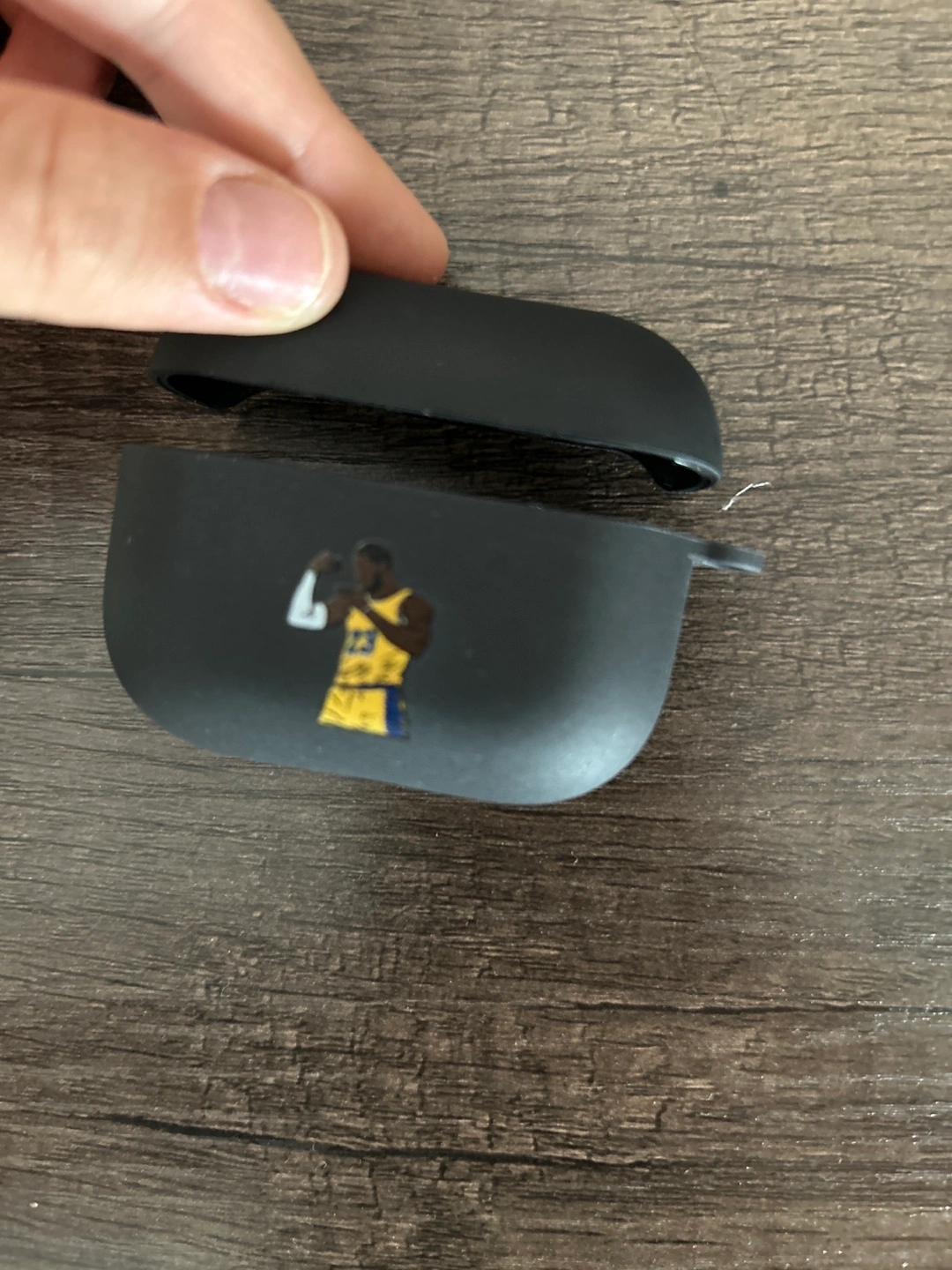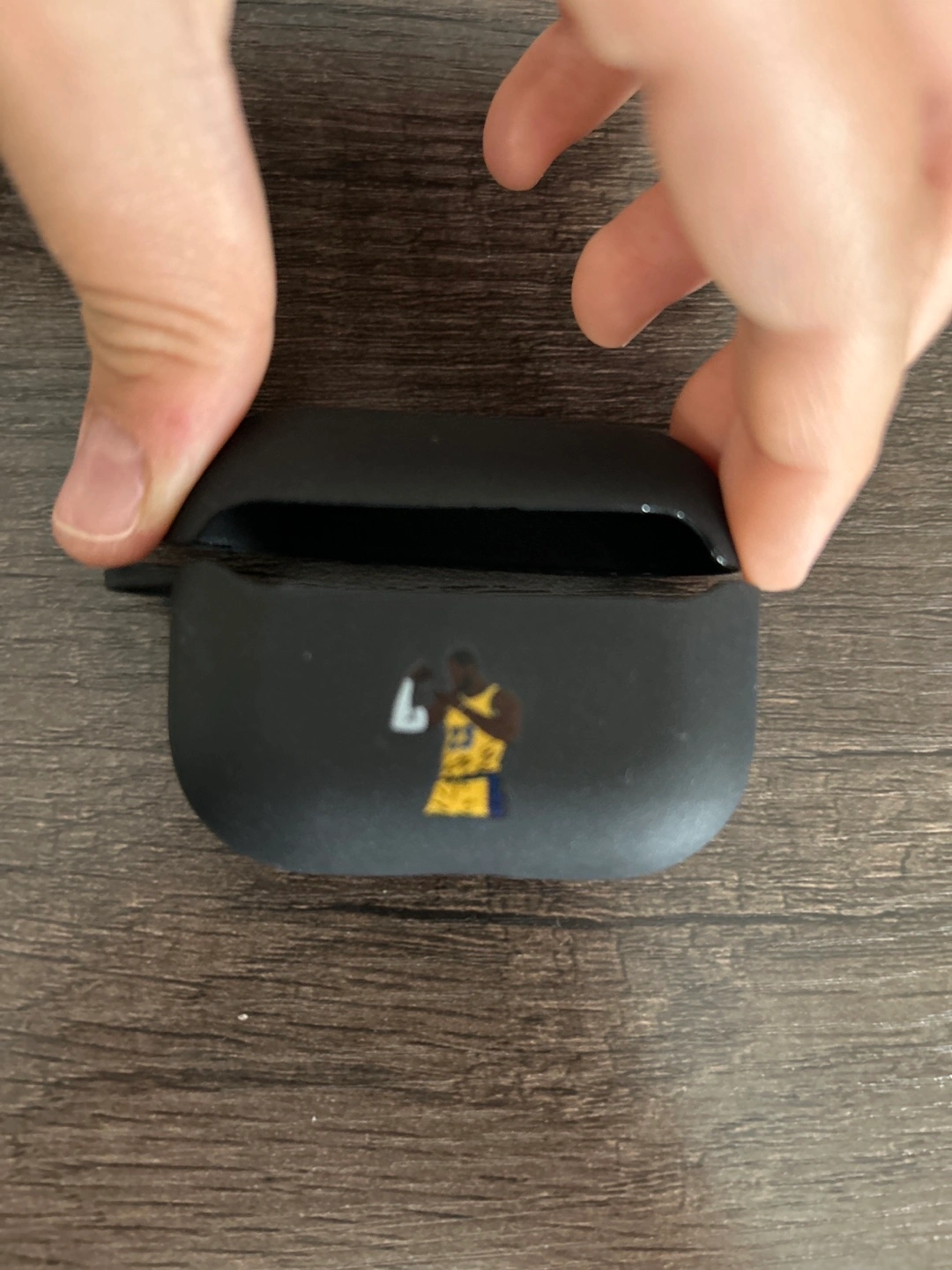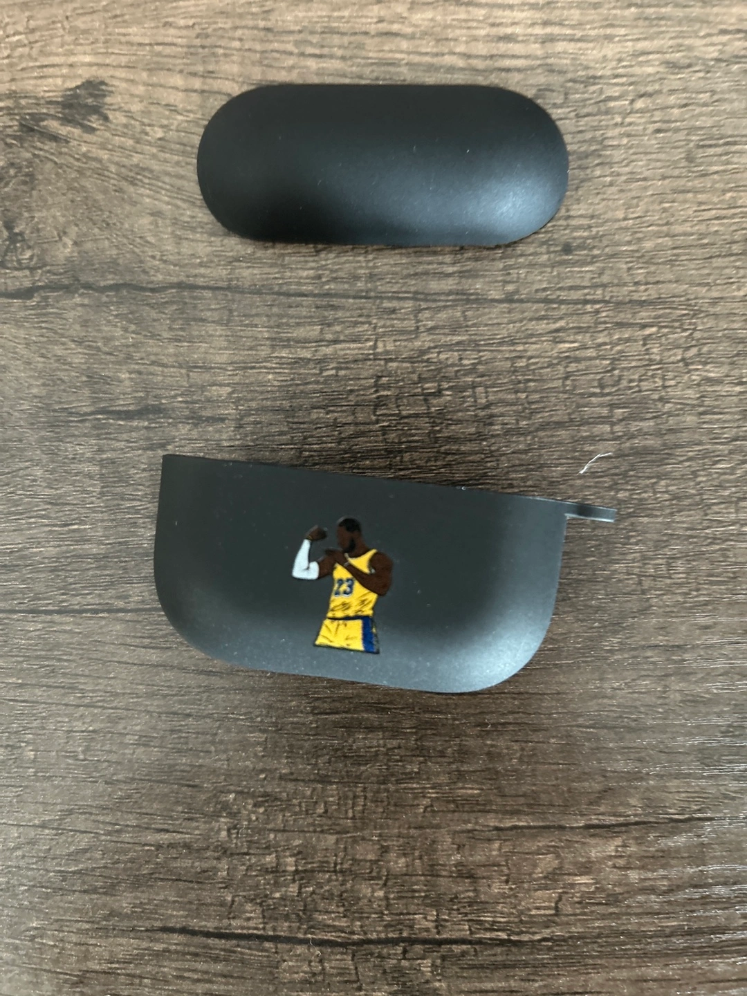 Black silicone Airpods case. Features a graphic of LeBron James. Protective cover for your Air-pods.