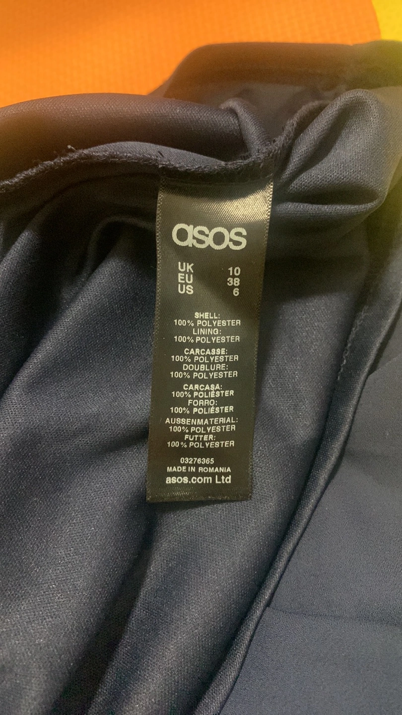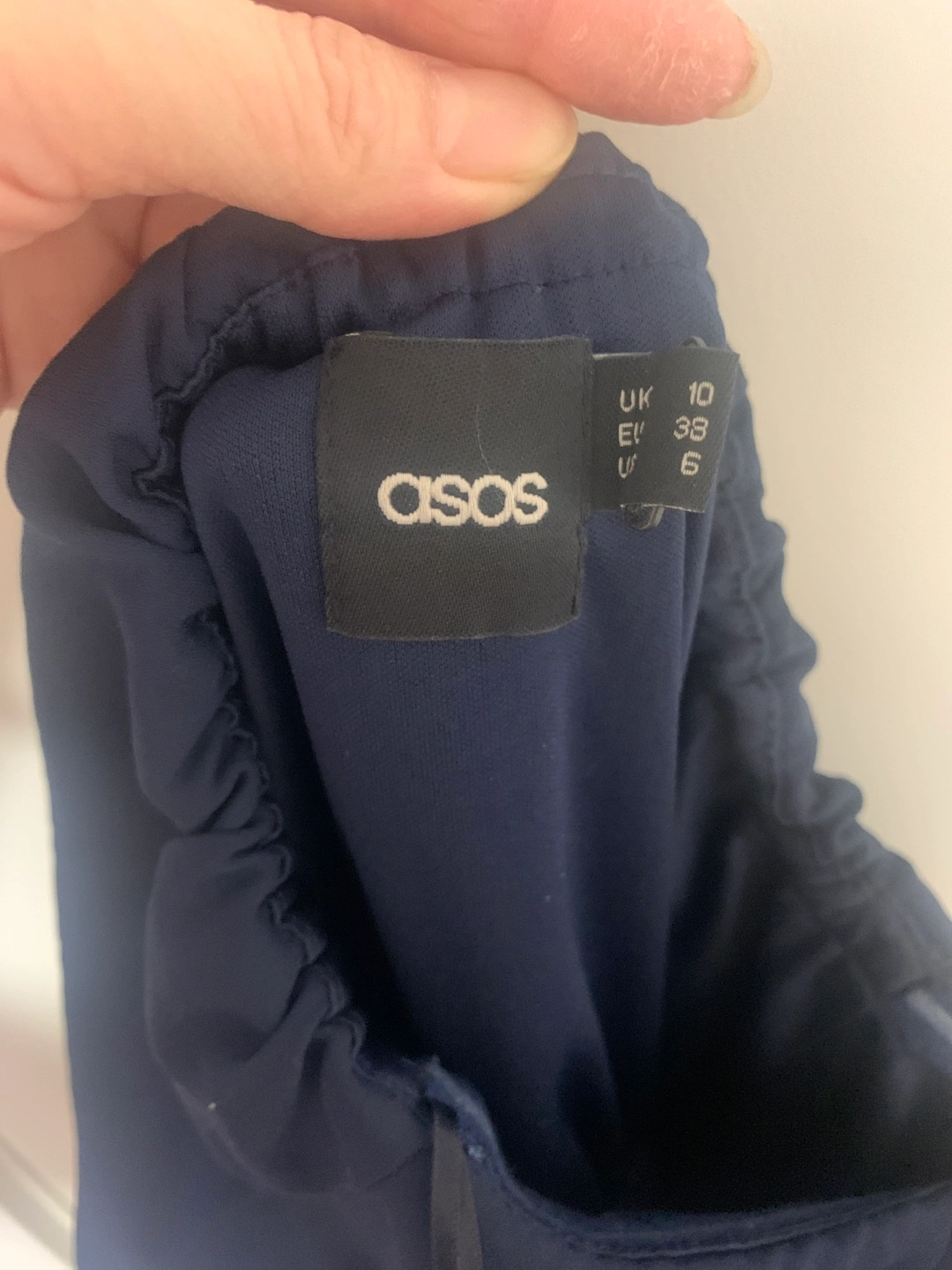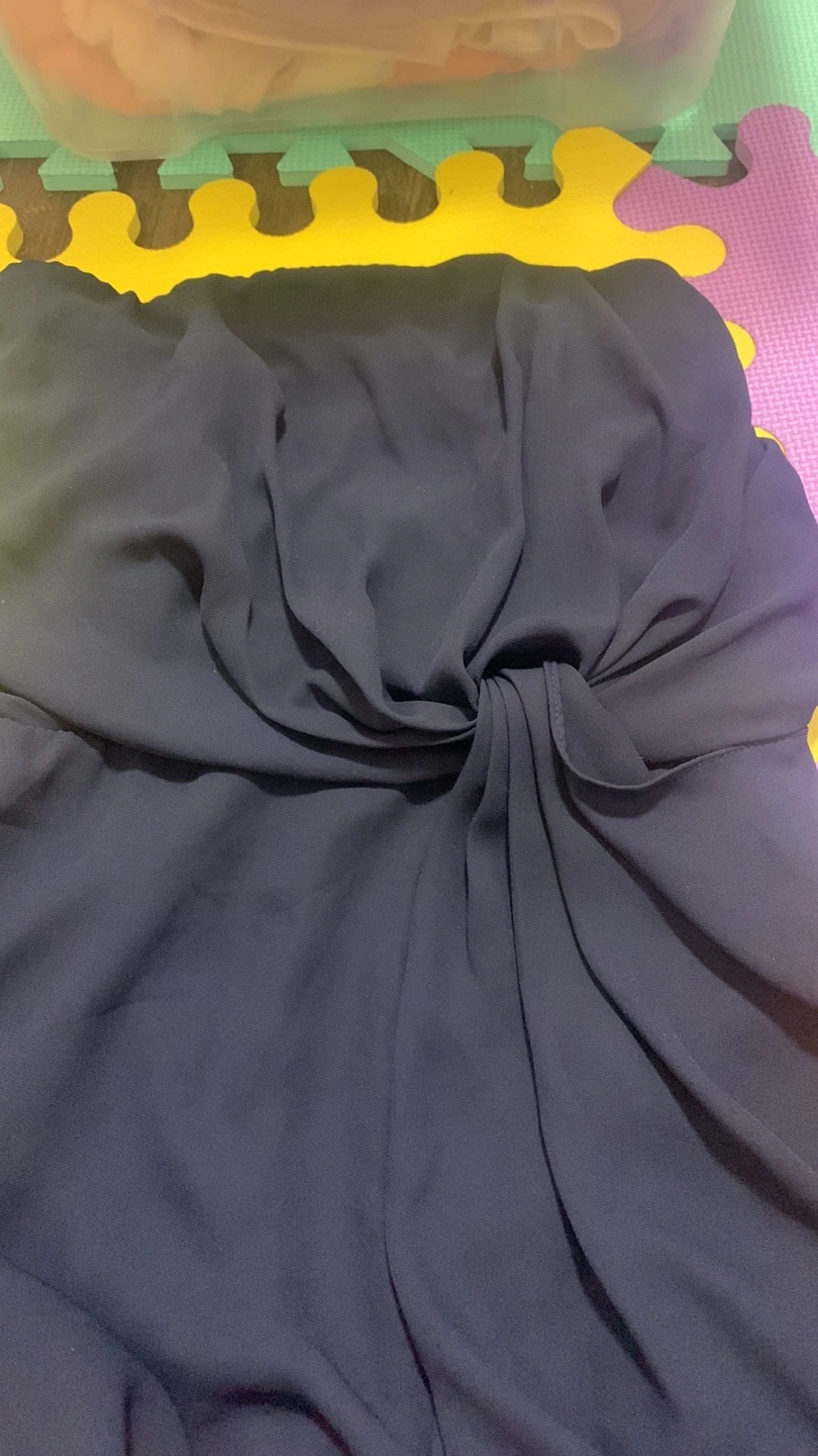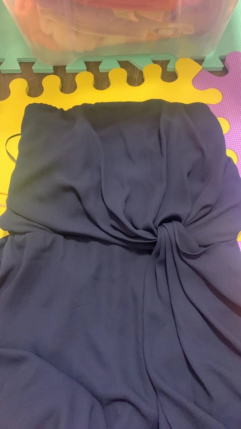Beautiful navy blue mini dress. Strapless with a twisted detail at the waist. Size 6. Polyester.