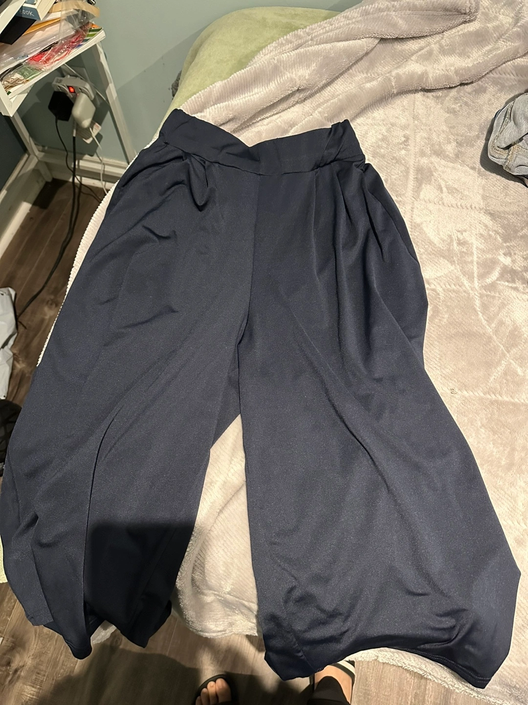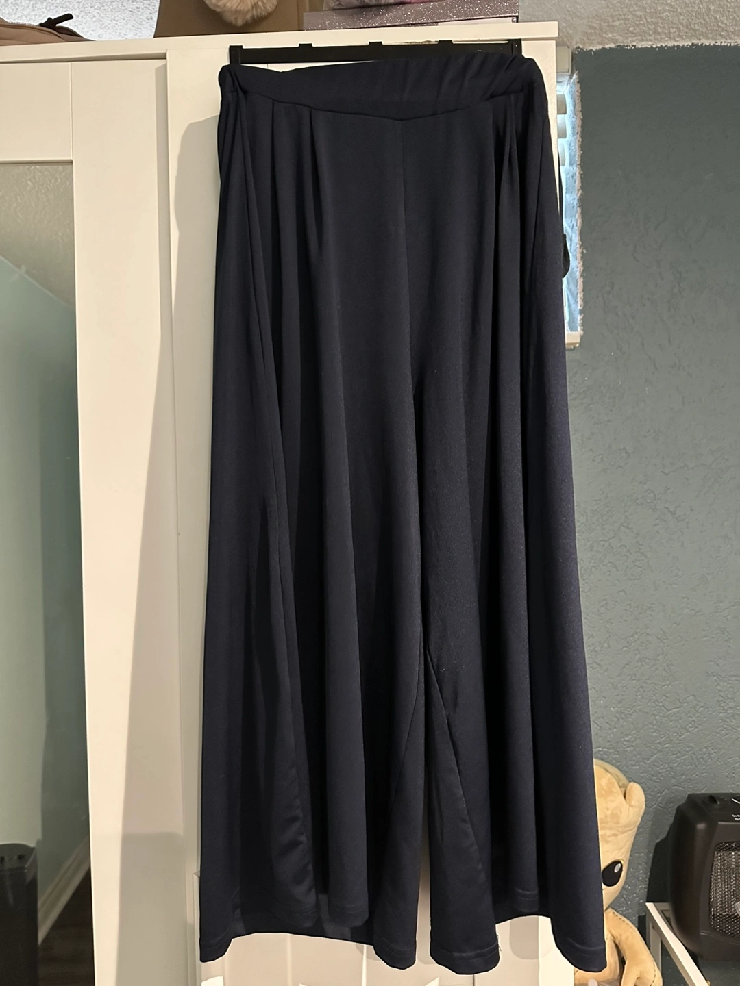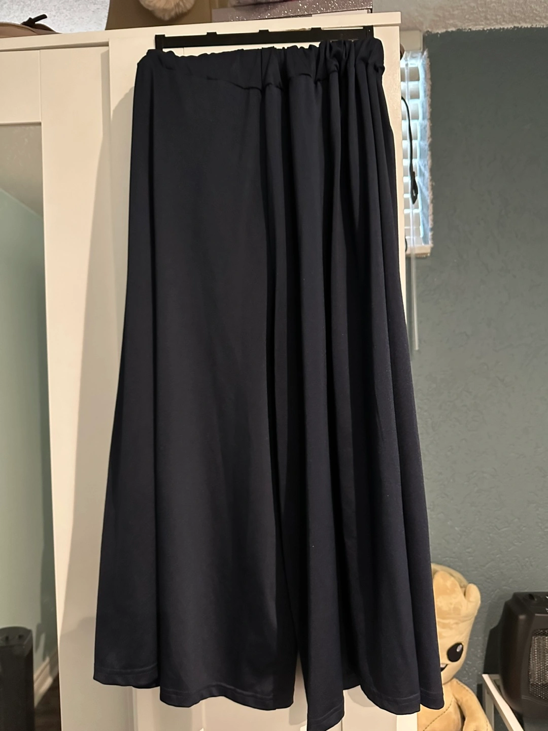 Wide leg culottes, navy blue. Elastic waistband. Comfortable and stylish. Great for any occasion. Don’t need it anymore
