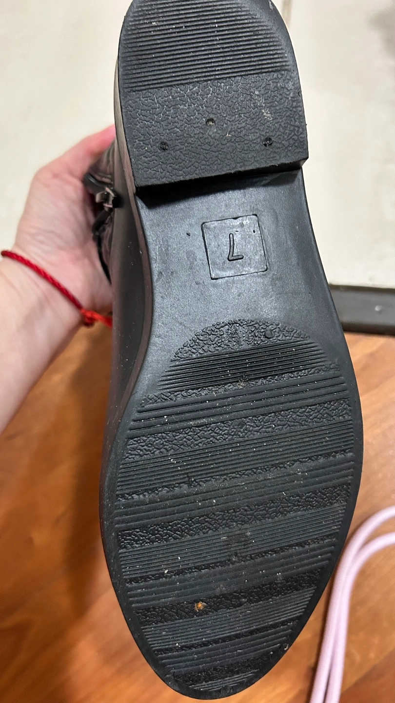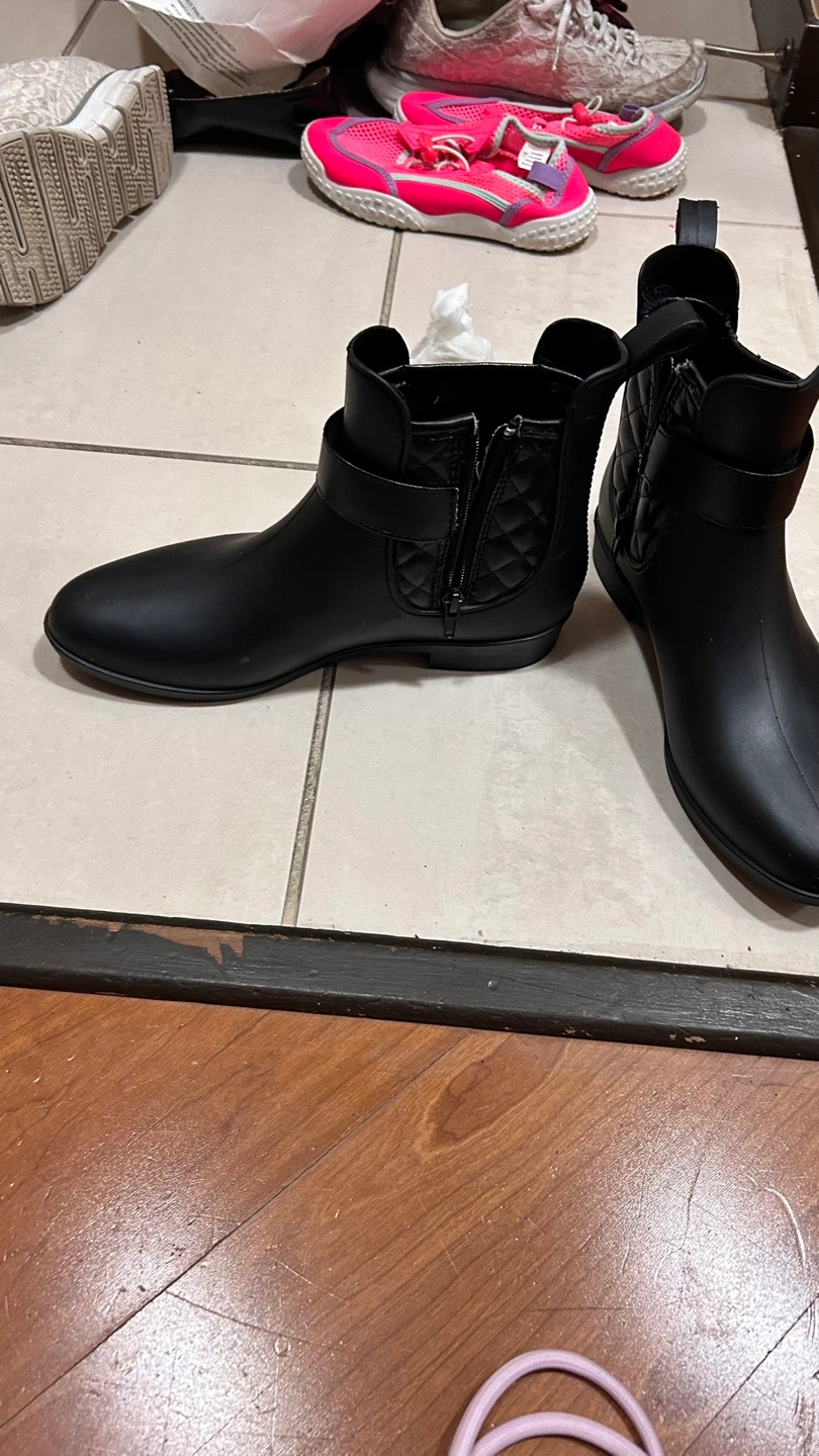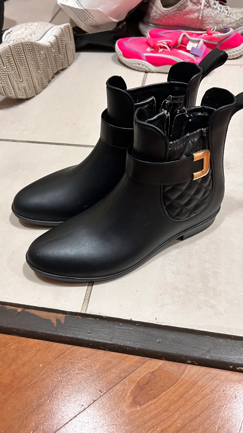 Black rain boots. Side zipper. Quilted detail on back. Good condition. Size 7.