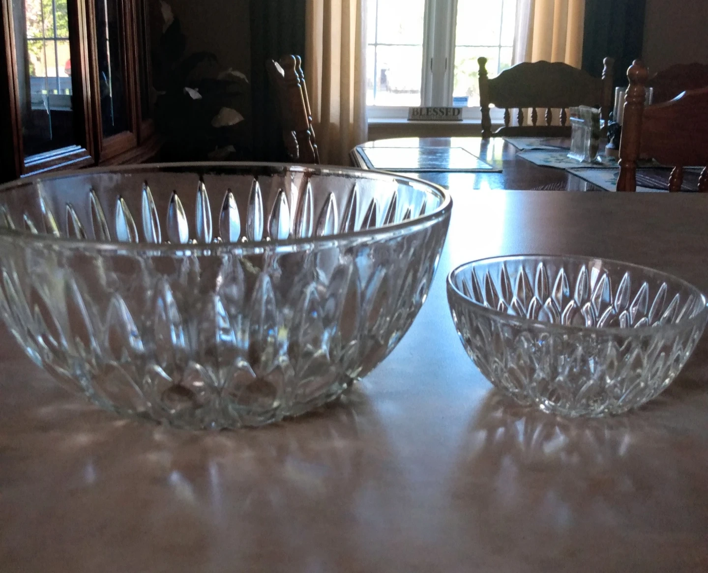 Set of two Crystals Clear glass bowls. Unique textured design. Perfect for serving snacks, fruit or salad. Non Negotiable (Cash pick up)