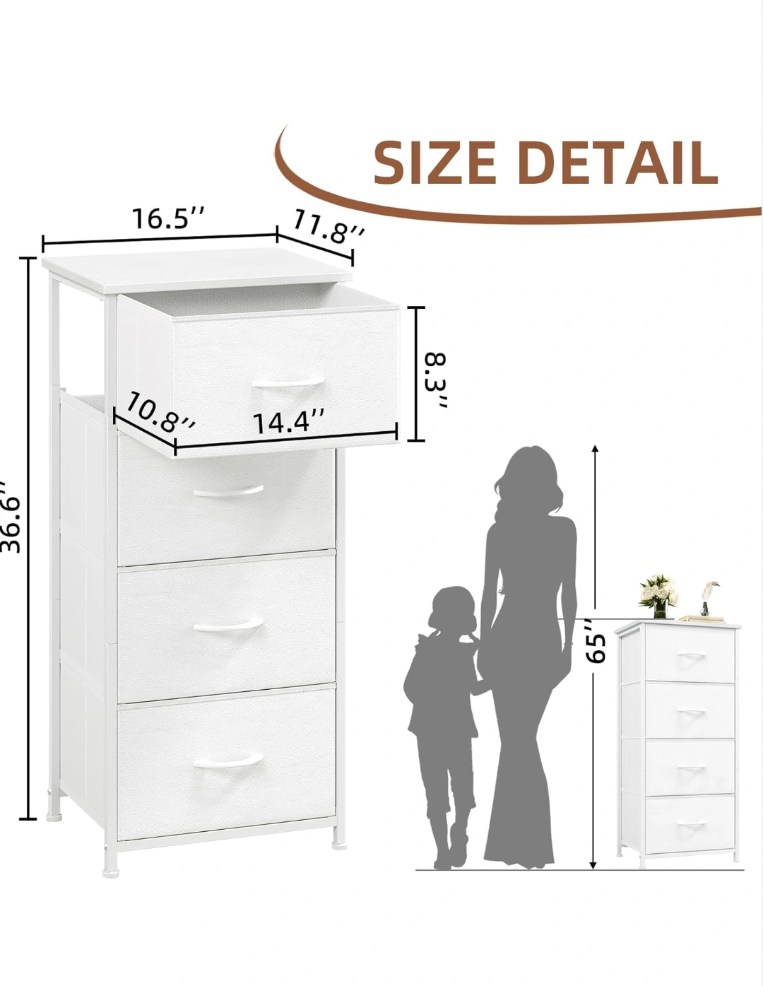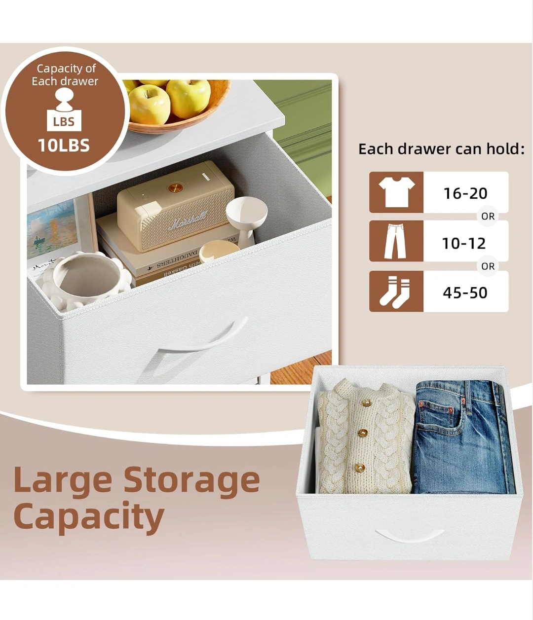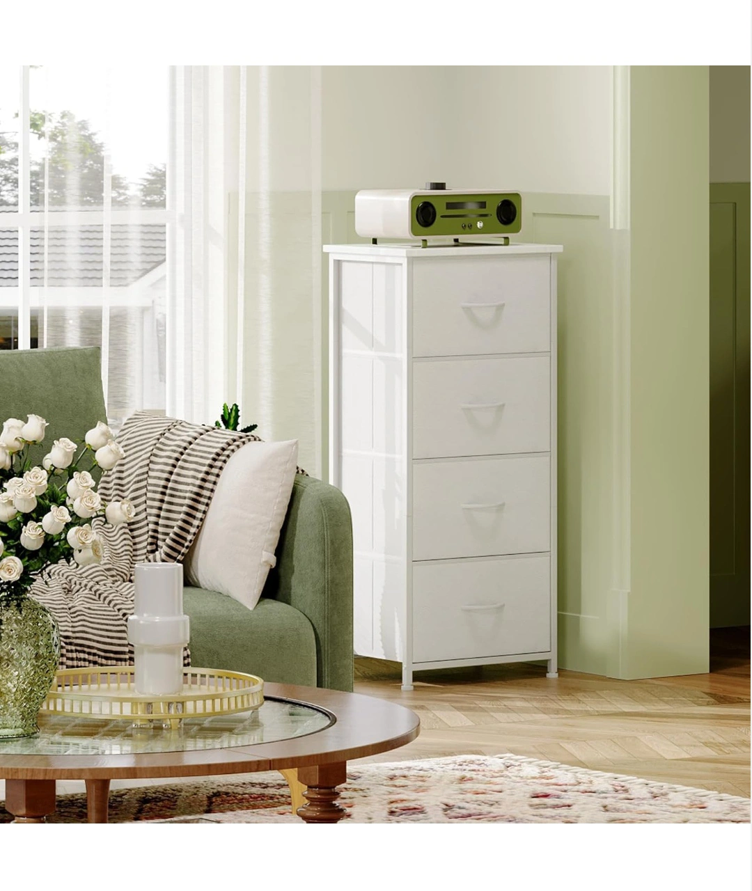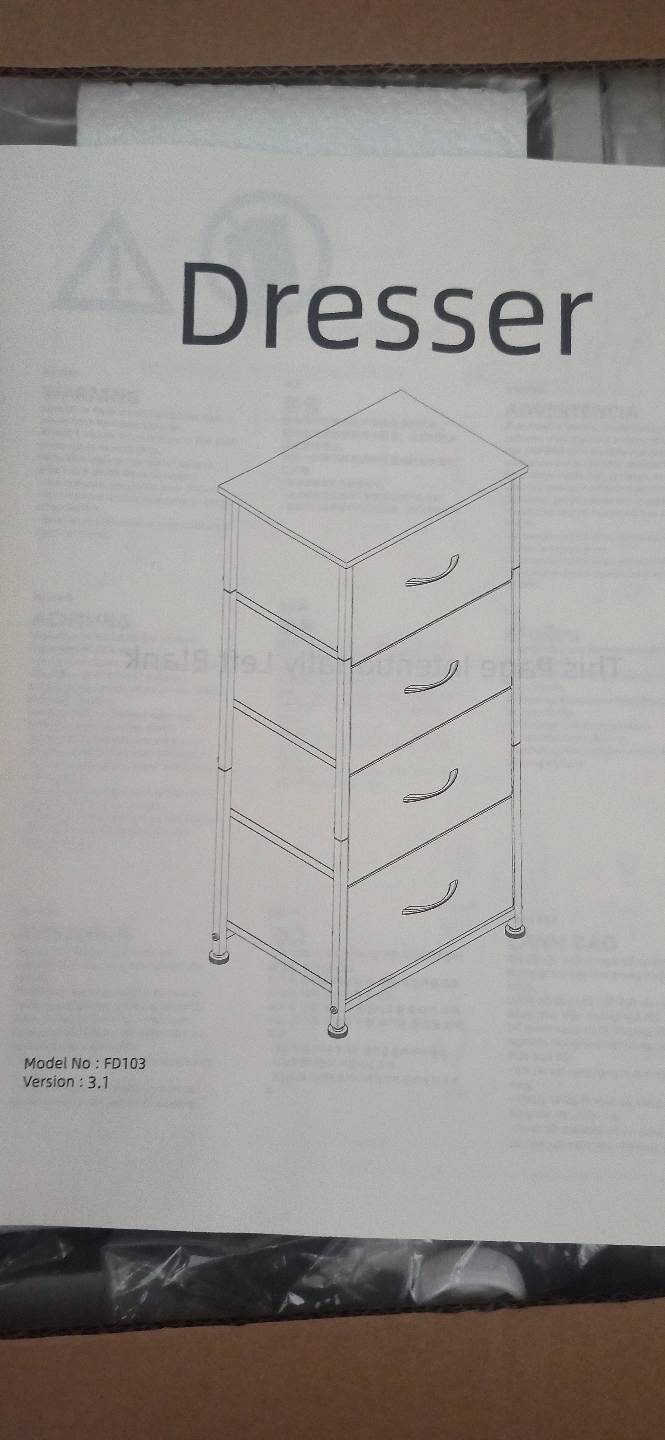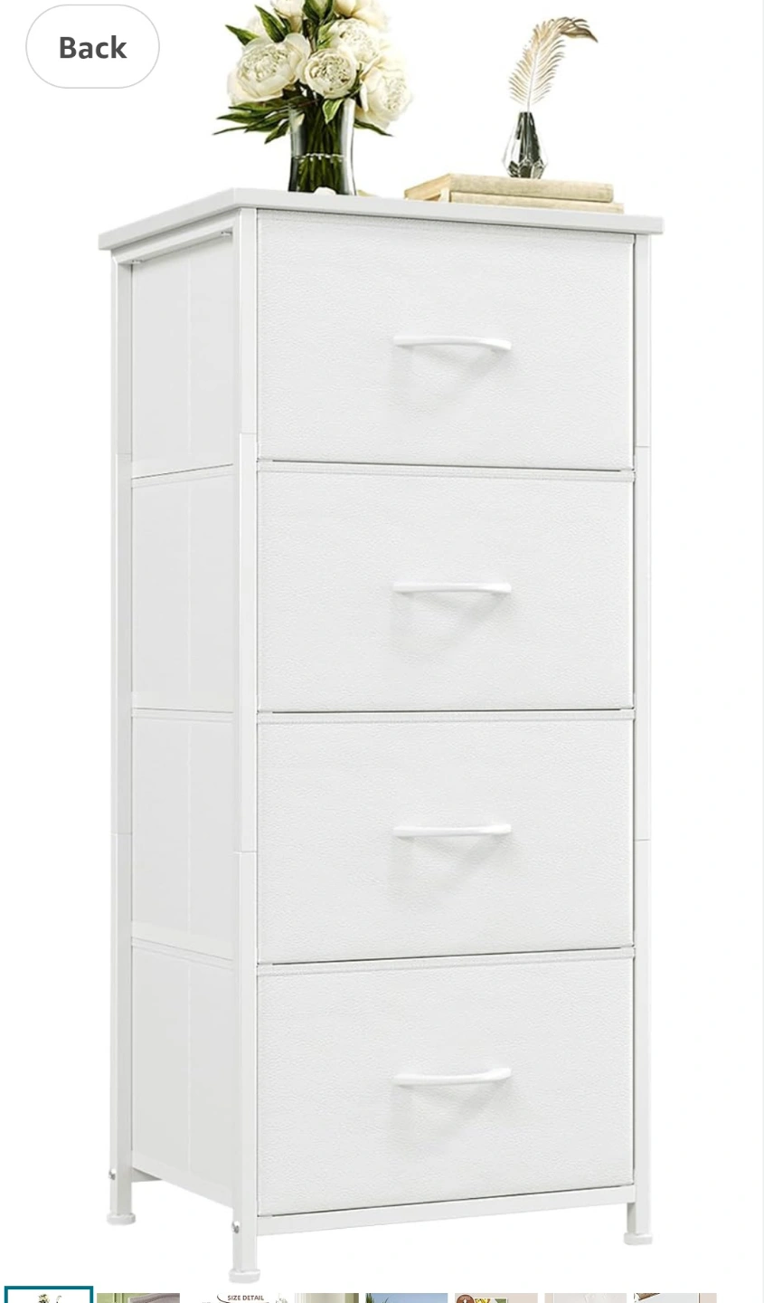 Somdot Tall Dresser for Bedroom with 4 Drawers, Storage Organizer Chest of Drawers with Removable Fabric Bins for Living Room Closet Bedside Nursery Laundry Entryway Hallway, White,new in box, pick up only