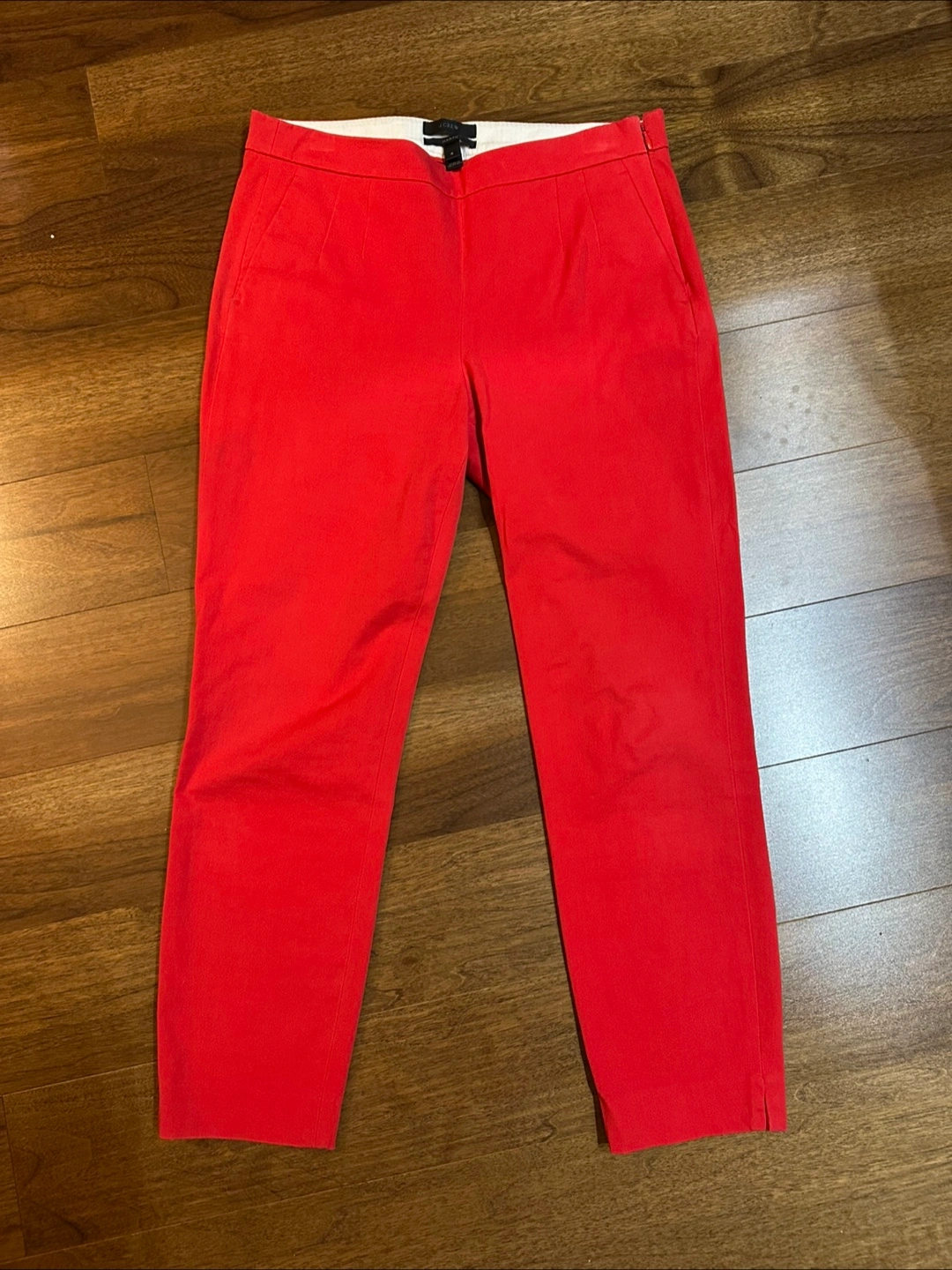 J Crew red ‘Martie’ cropped trouser Side zipper closer Size 4.