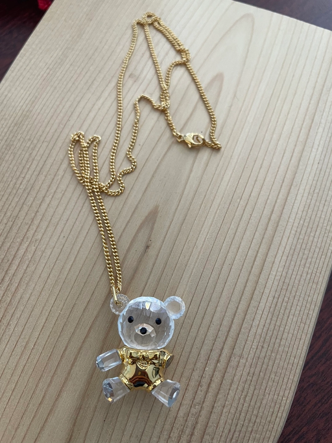 Adorable crystal teddy bear pendant. Gold chain included. Unique and charming piece.
