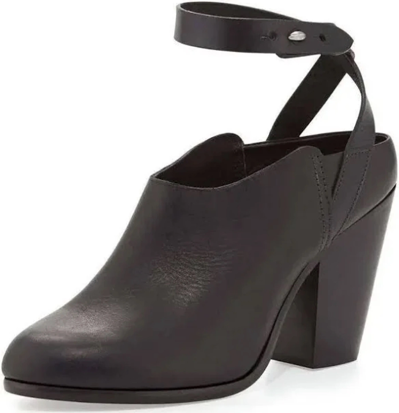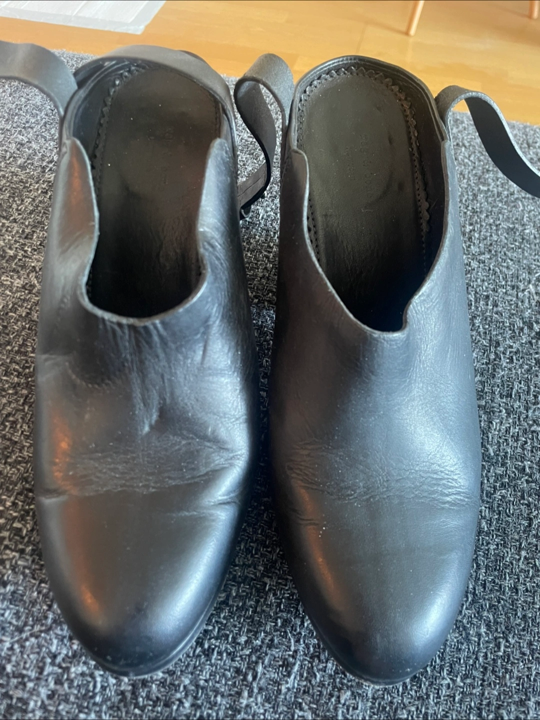 Women's black leather ankle boots. Block heel. Ankle strap closure. Good condition. Size 38. Original box and dust bag included.