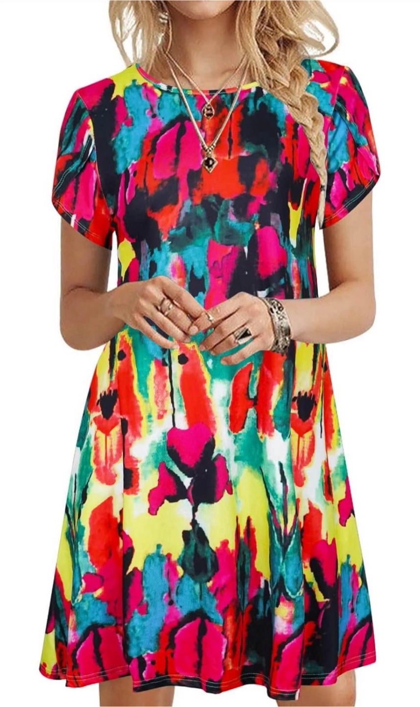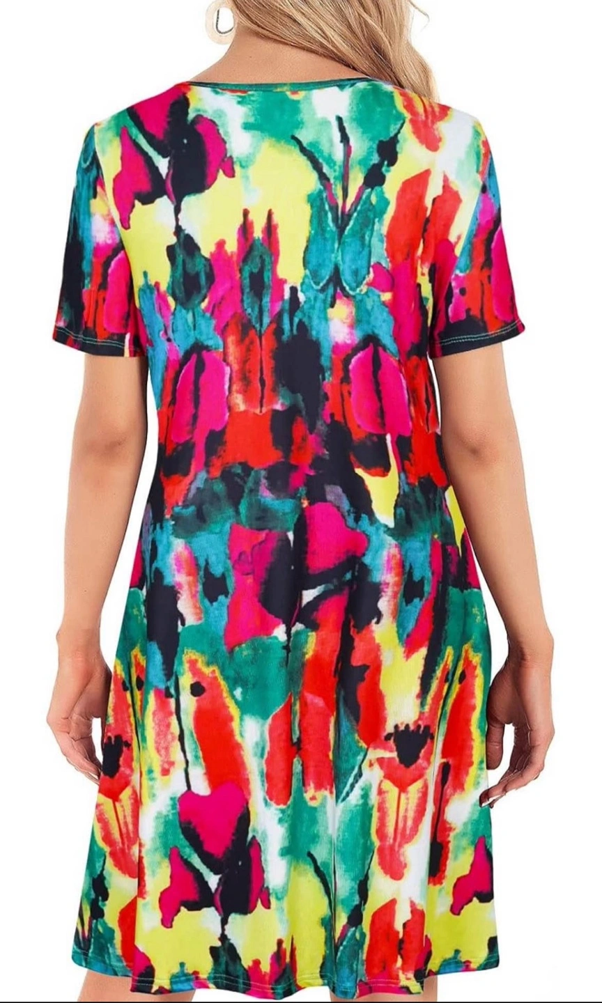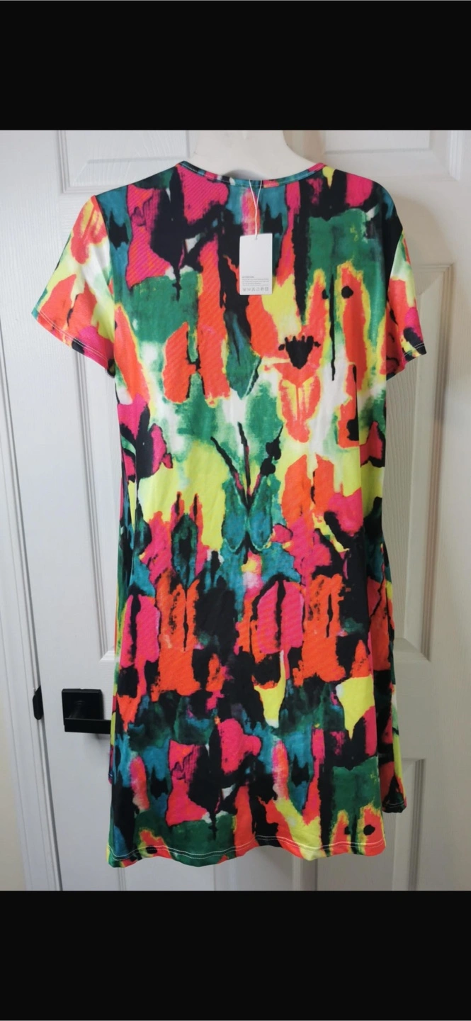 New with tag. Retails for $42 Pull On style Bohemian vibe dress is suitable for various occasions, such as waking around house, going to office, celebrating birthday. A must-have item in wonderful summer. Perfect for hot summer days, also looks cute with a jean jacket too. Dress it up or down, show the world your endless style! With it, you are the well-deserved focus of the crowd. ❤ 【 Material 】95% polyester+5% spandex, soft, comfy and elastic. ❤ 【 Size 】Medium ❤ 【 Features 】casual style, short sleeve, two side pockets, round neck, above the knee length, skin friendly, loose, stretch. ❤ 【 Match 】 wearing with sexy heels, cute sandals, comfy sneakers and simple earring necklace jewelry. Different kinds of wearing styles to show different beauty. ❤ 【 Occasion 】Home/Casual/Party/School/Wedding/Shopping/Work/Outside/Holiday/Bohemian style/Valentine's Day/Christmas. It is suitable for all season. Short sleeve, round neck, colourful abstract print, swing style dress. Size medium. New with tags.