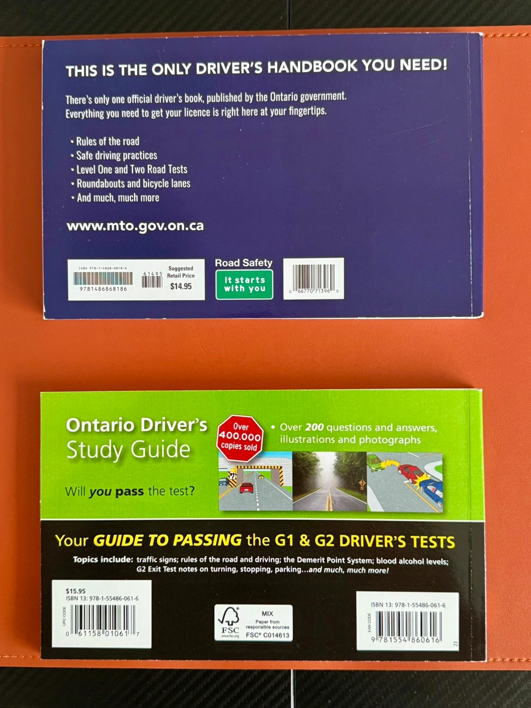 Like new! $10 each. Official MTO Driver’s Handbook + Study Guide with 200+ sample questions. Like new. Helped me pass — now it’s your turn!
