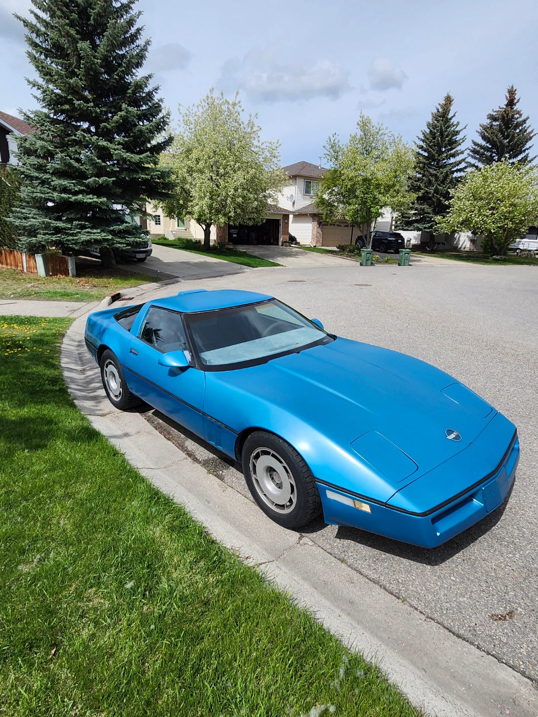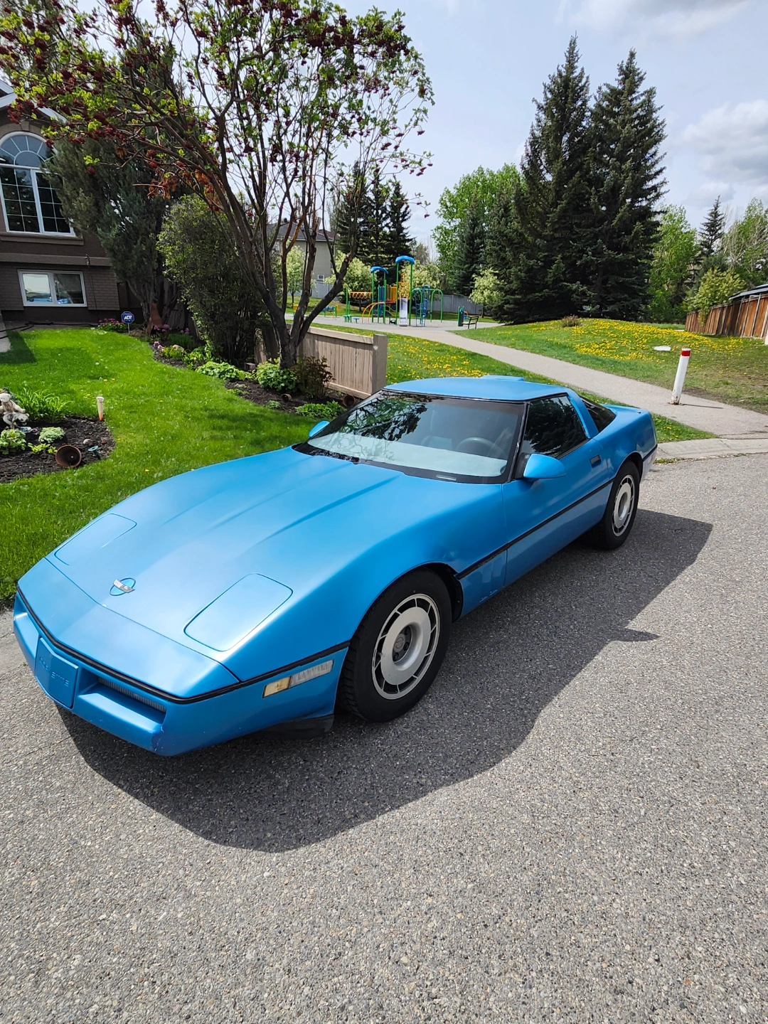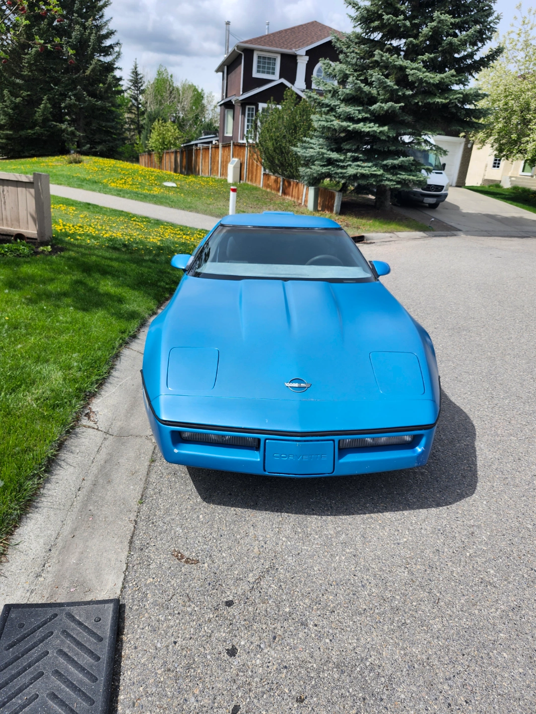 1987 blue corvette coupe good condition for the year exterior 8/10, interior 7/10 350 stock engine with 240hp new front brakes, front shocks, new master cylinder, battery 2.5 years old, tires have only 15000kms on them, car in miles 131000miles / 210000kms located in Riverbend se call or text 403 6891692