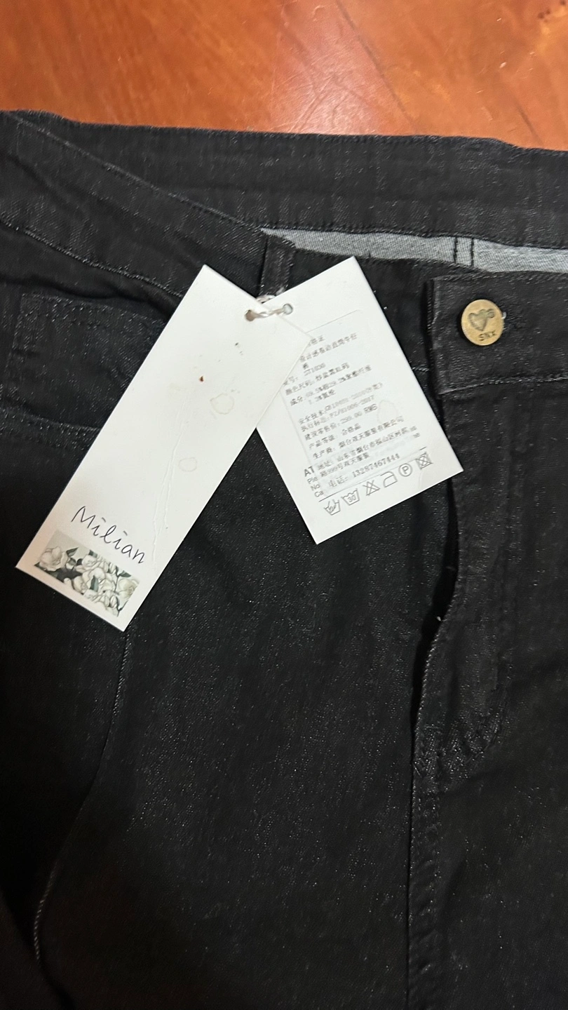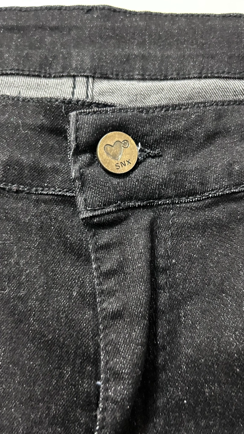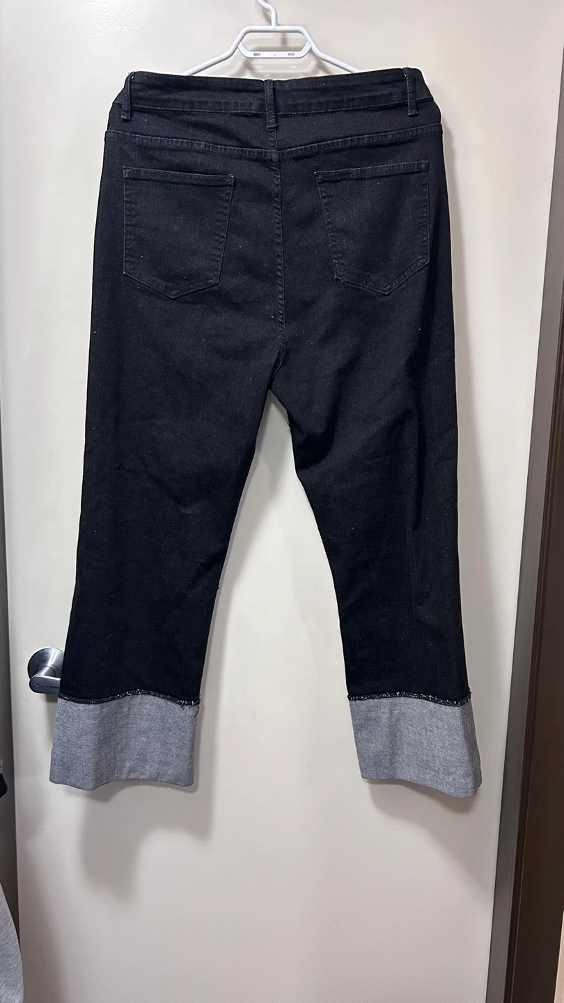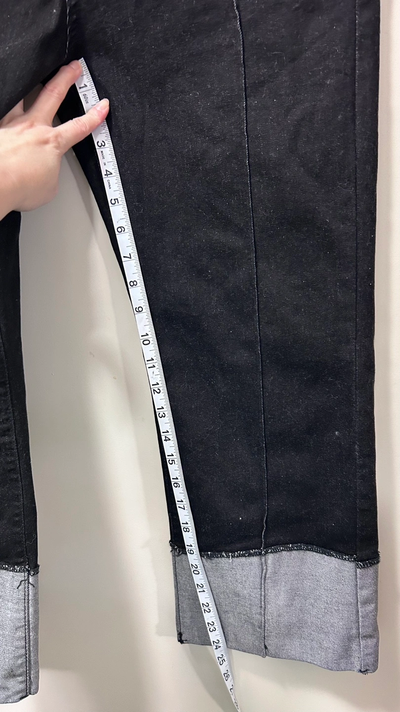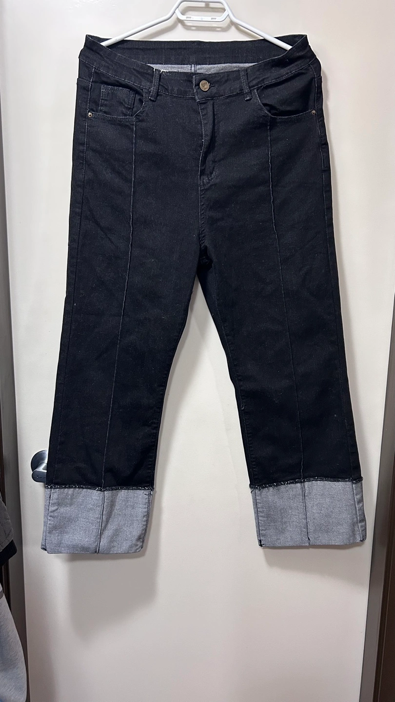 Women's black cropped jeans. Size xl. Features cuffed hems. From the brand Milian.
