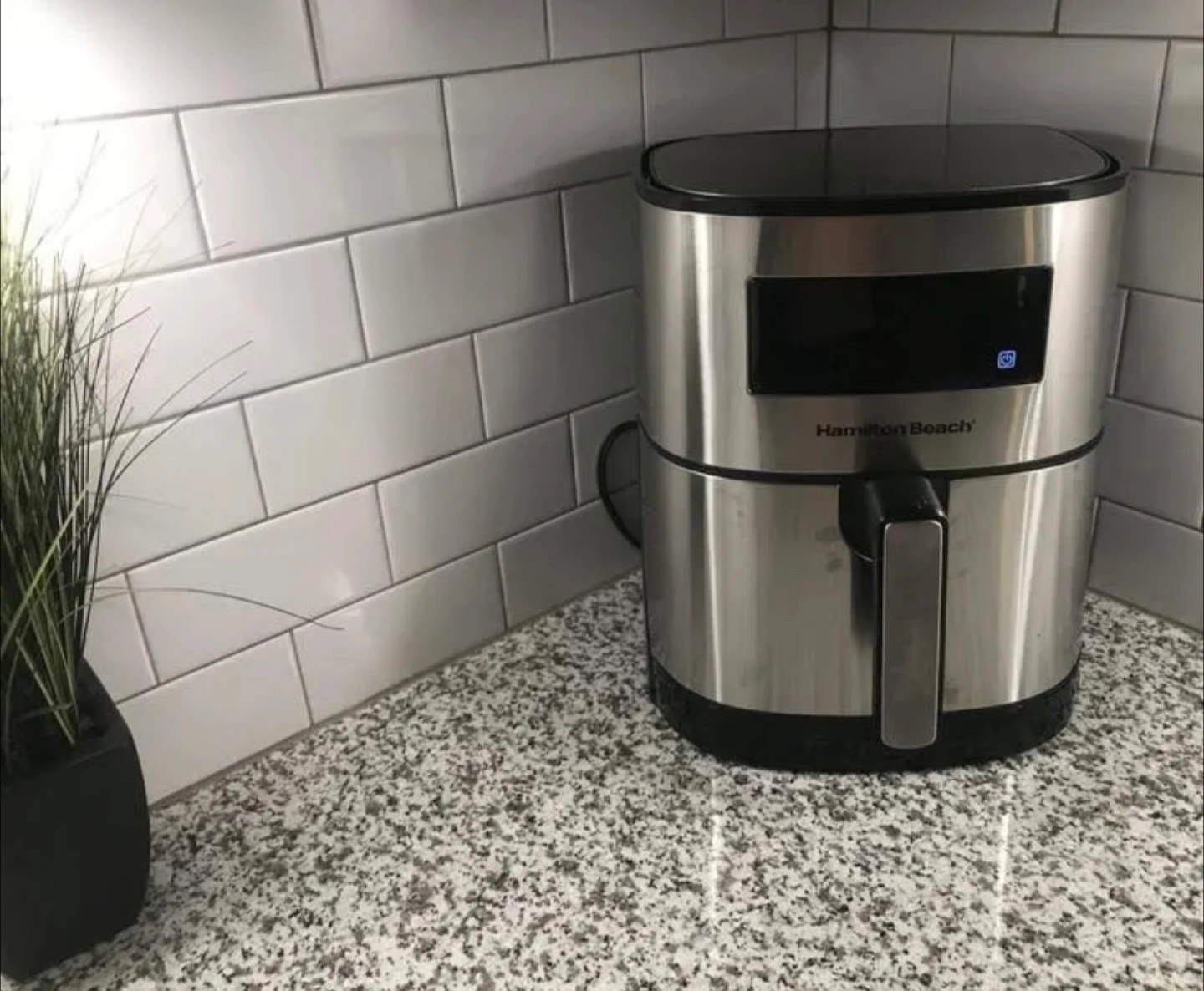 Stainless steel air fryer. Digital controls. Great for quick and easy cooking.