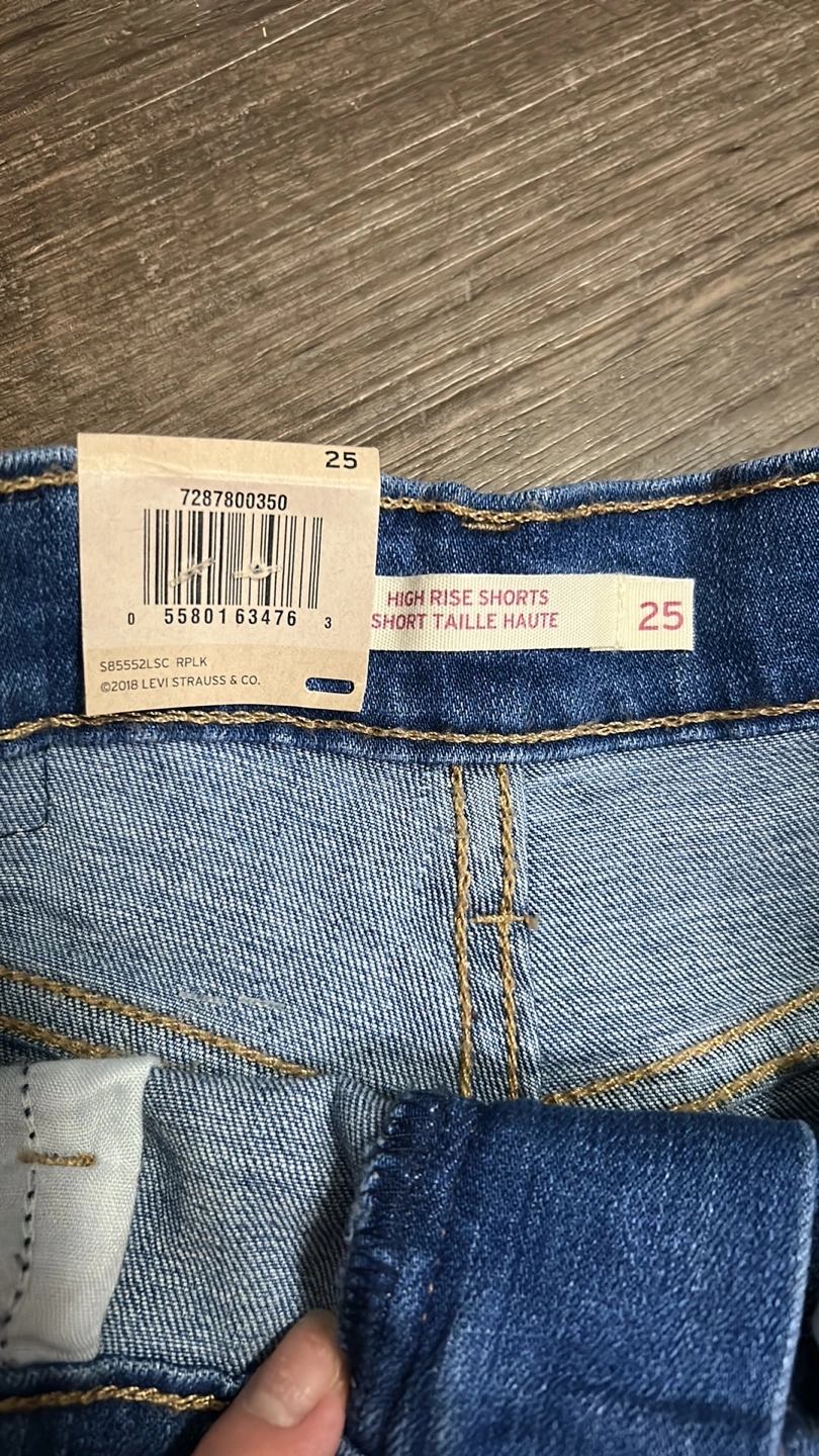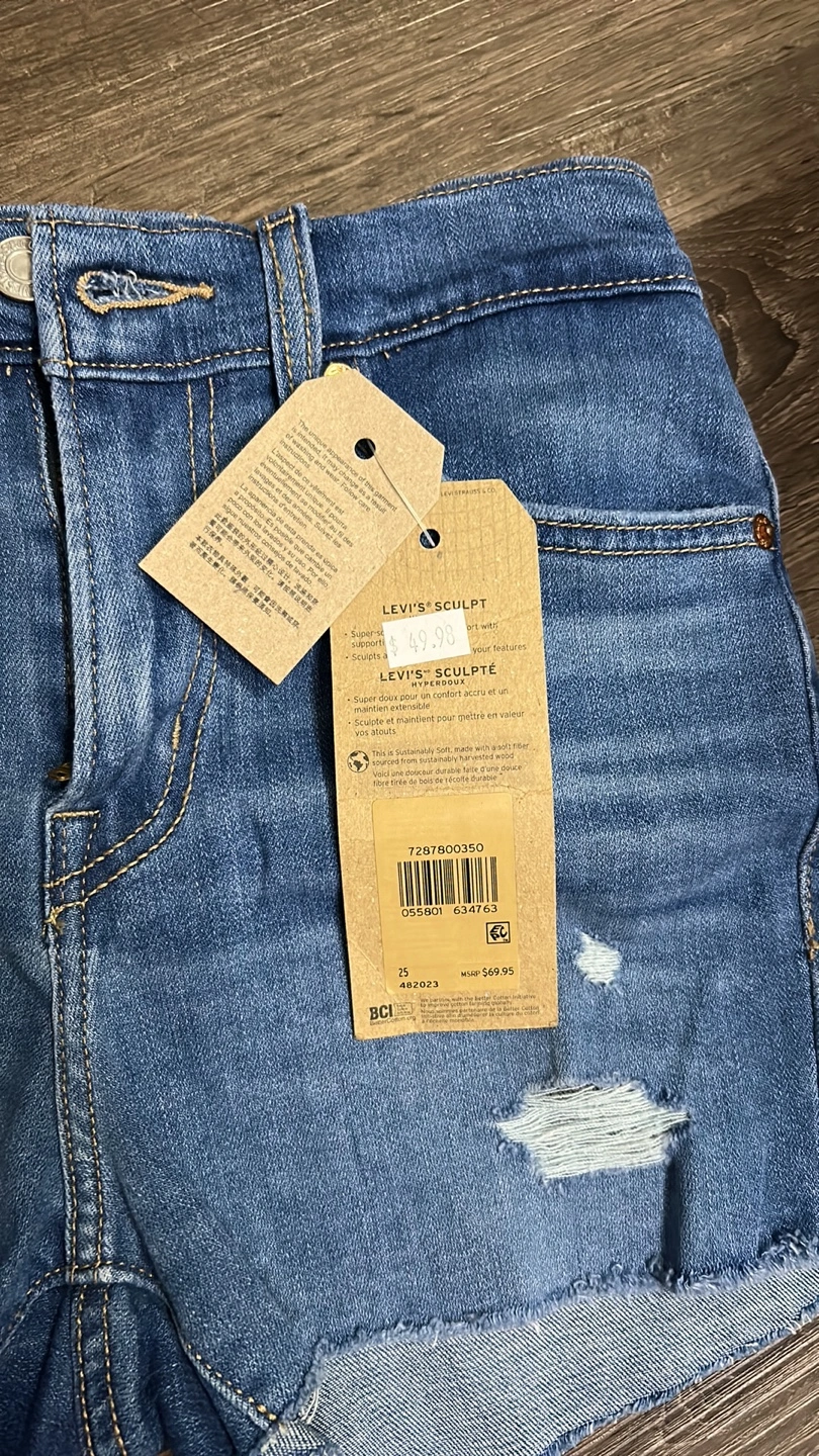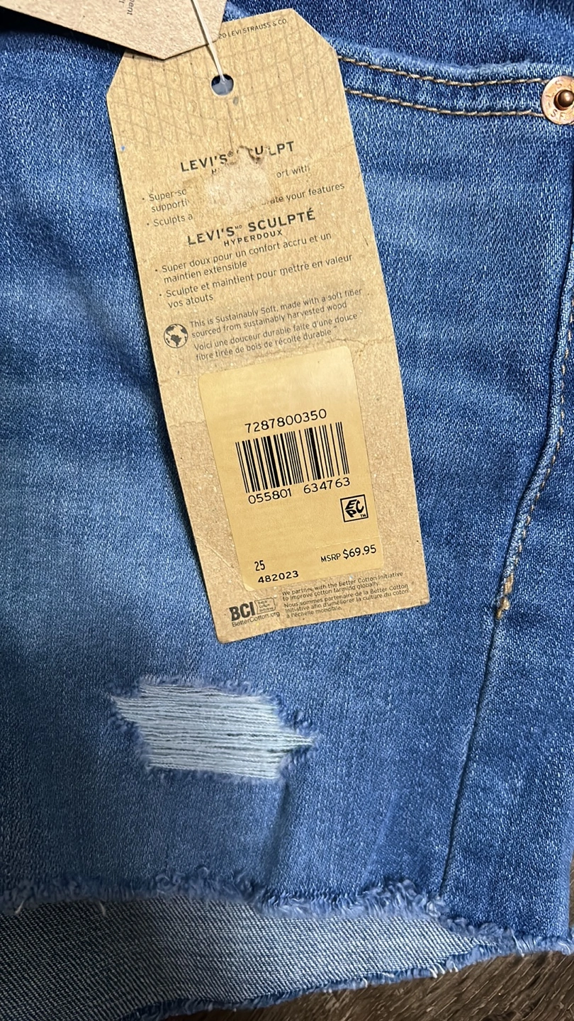 Women's Levi's Sculpt high rise denim shorts. Size 25. Raw hem. Distressed details. New with tags.