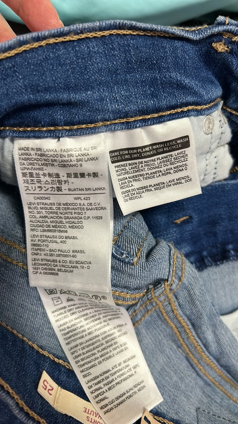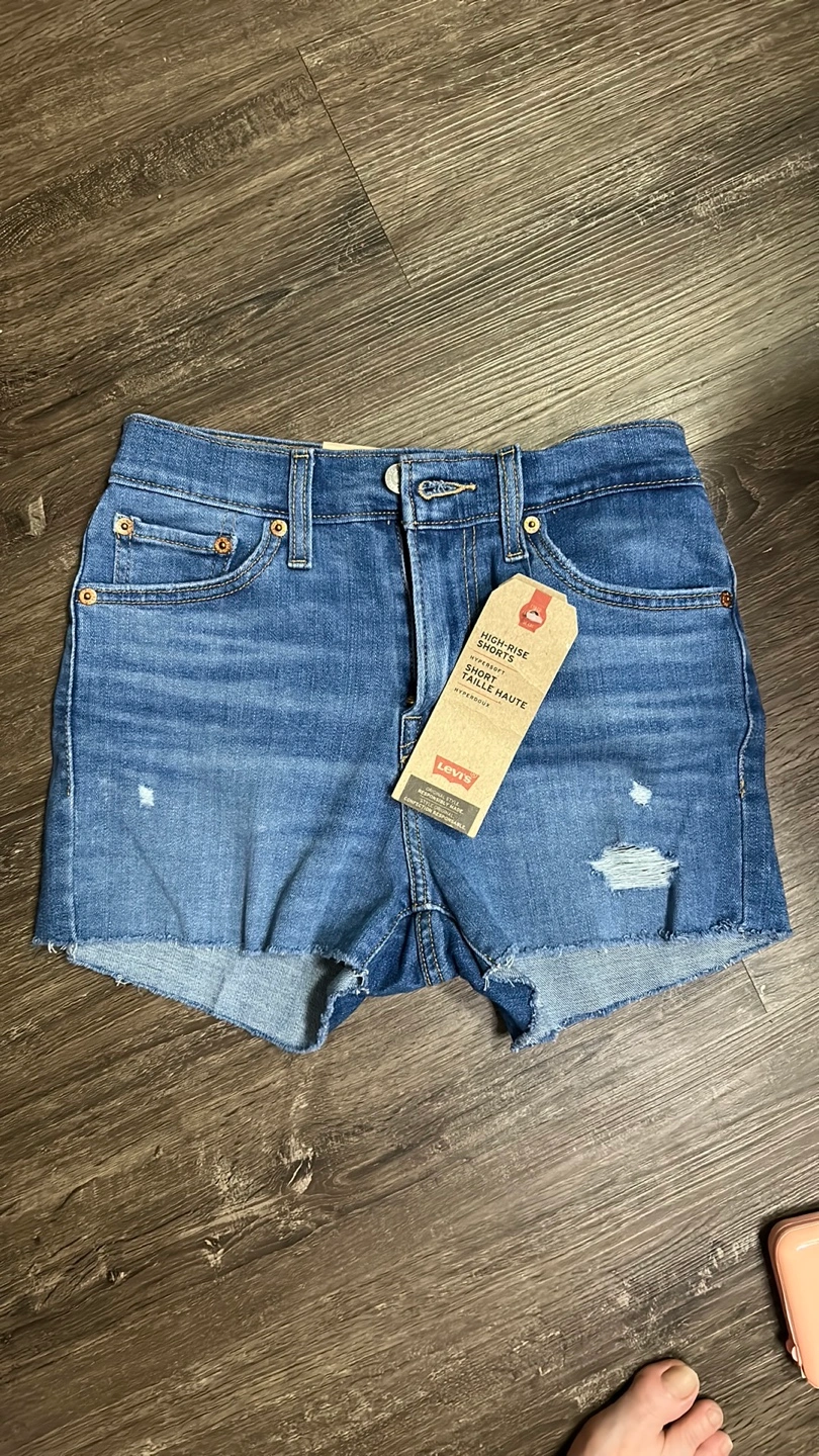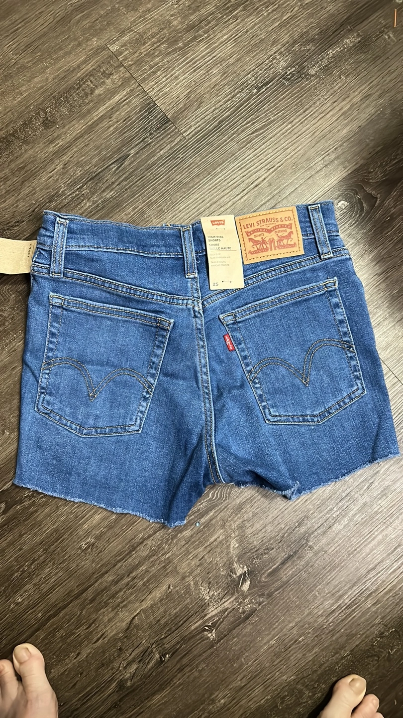 Women's Levi's Sculpt high rise denim shorts. Size 25. Raw hem. Distressed details. New with tags.