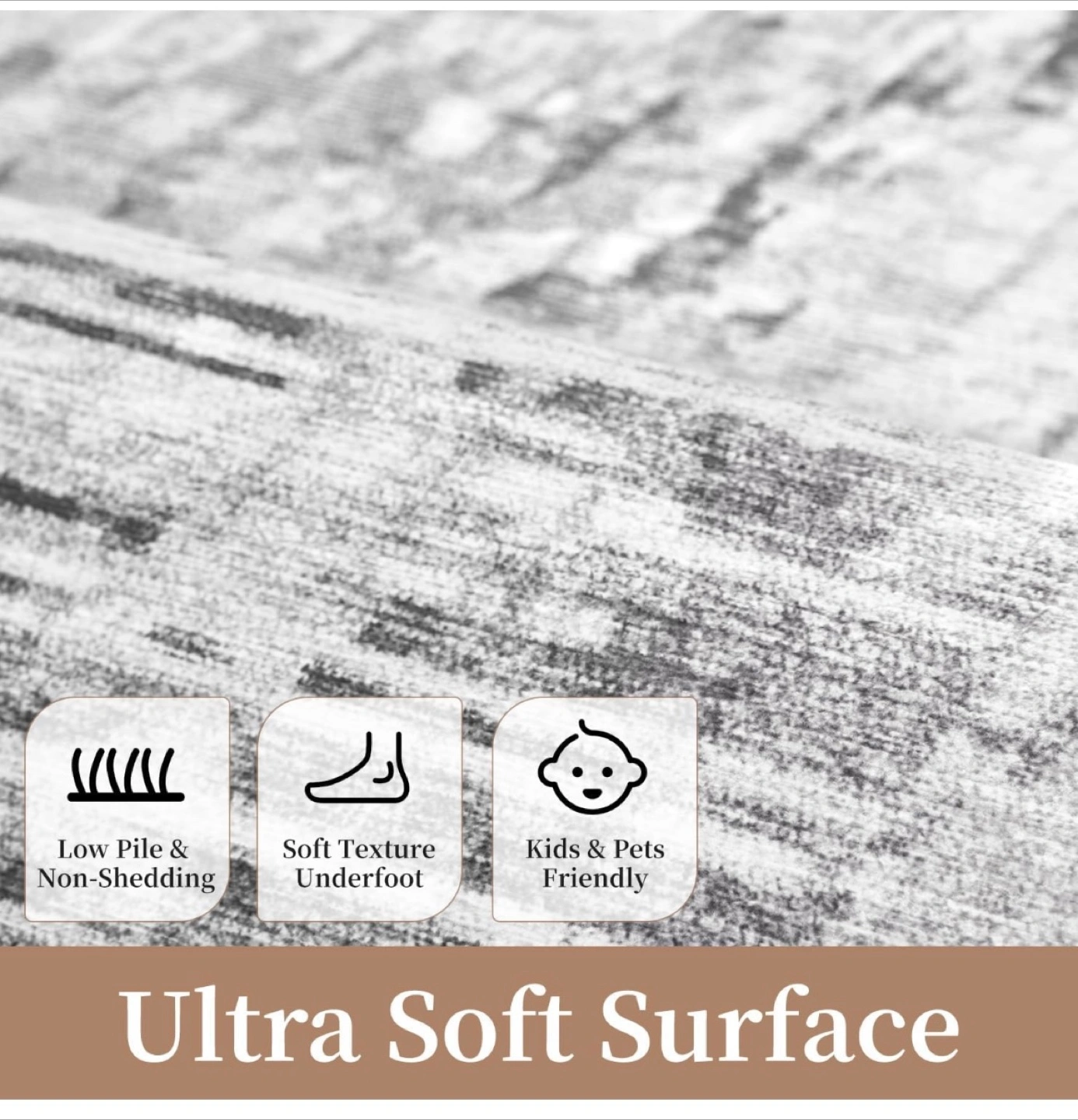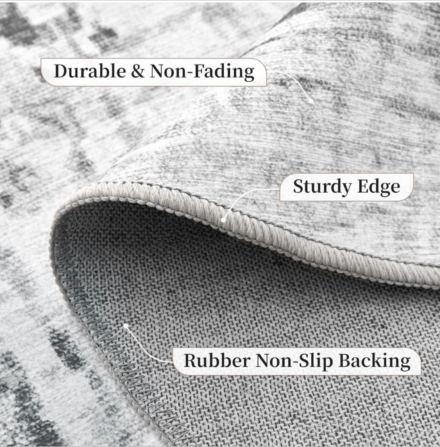 Grey Area Rug 8’x8’ Round Modern Abstract, Machine-Washable w Non-Slip Backing. New ! $60 firm.