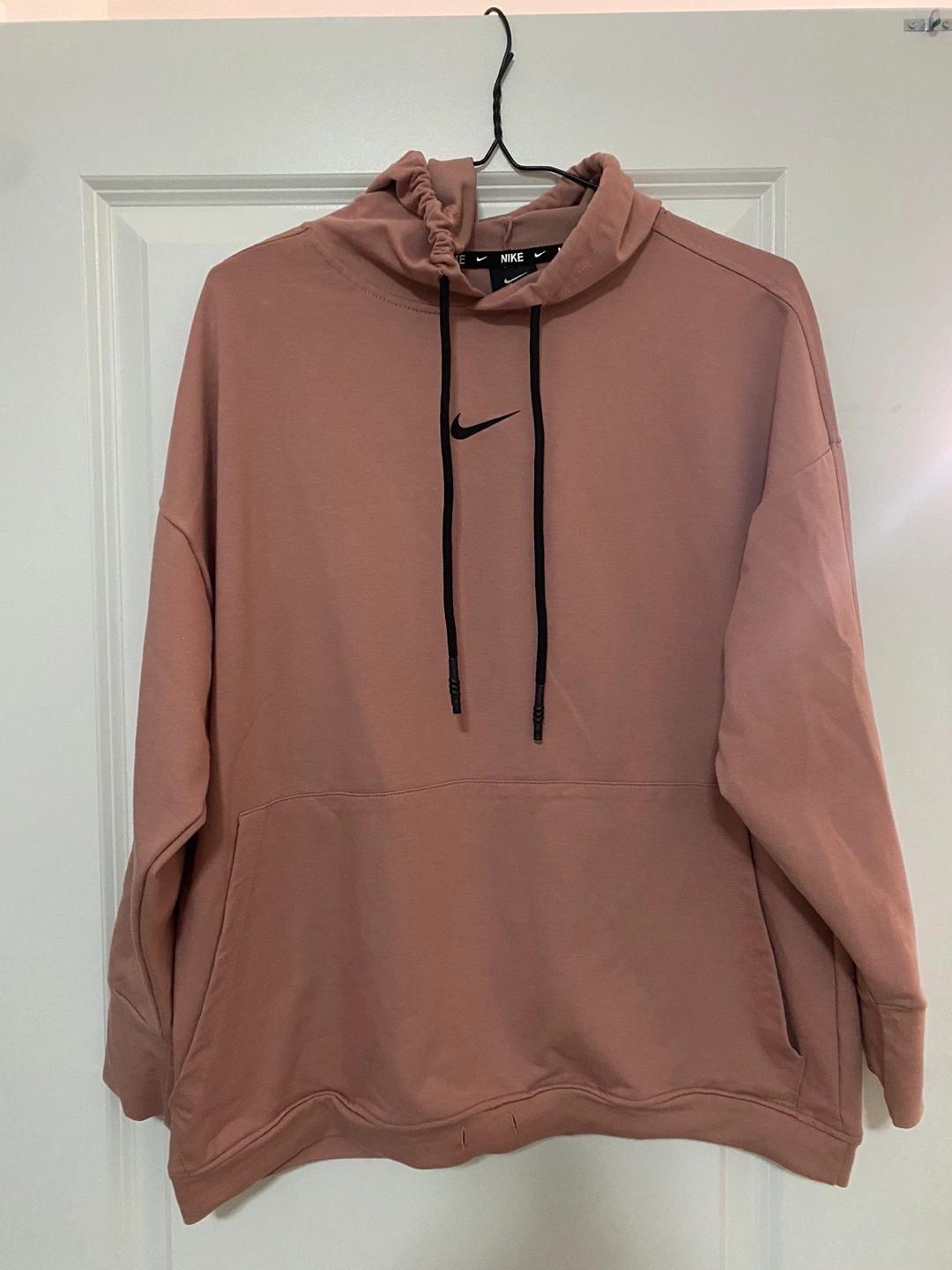 Nike Women's Hoodie - Dusty Rose Women's Nike hoodie. Dusty rose colour. Long sleeves. Drawstring hood. Relaxed fit. Great for casual wear or working out.