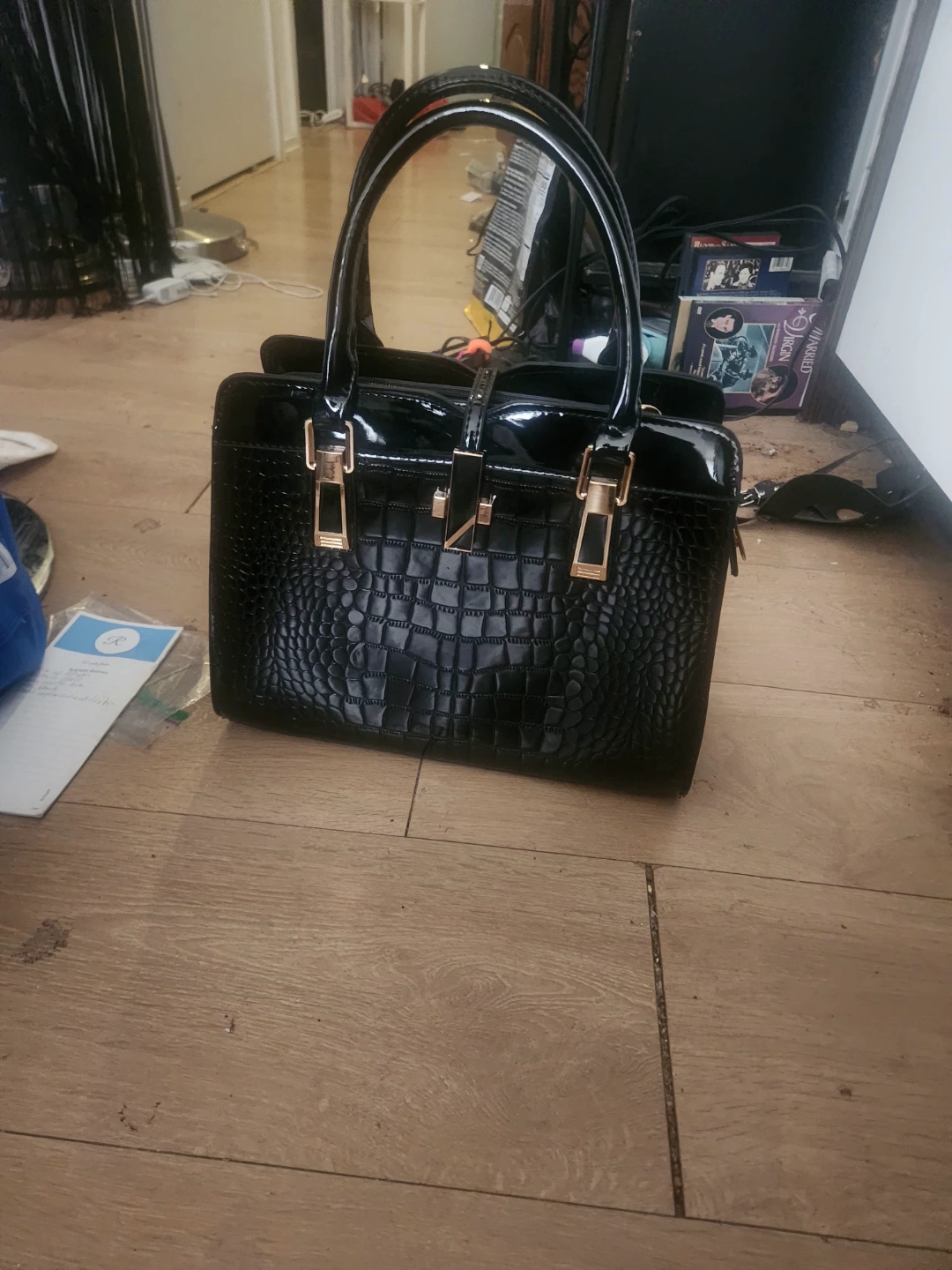 Black Nicole and Doris, crocodile-embossed polyurethane Hand bag Gold-tone hardware. Top handles and zip closure. Excellent condition.