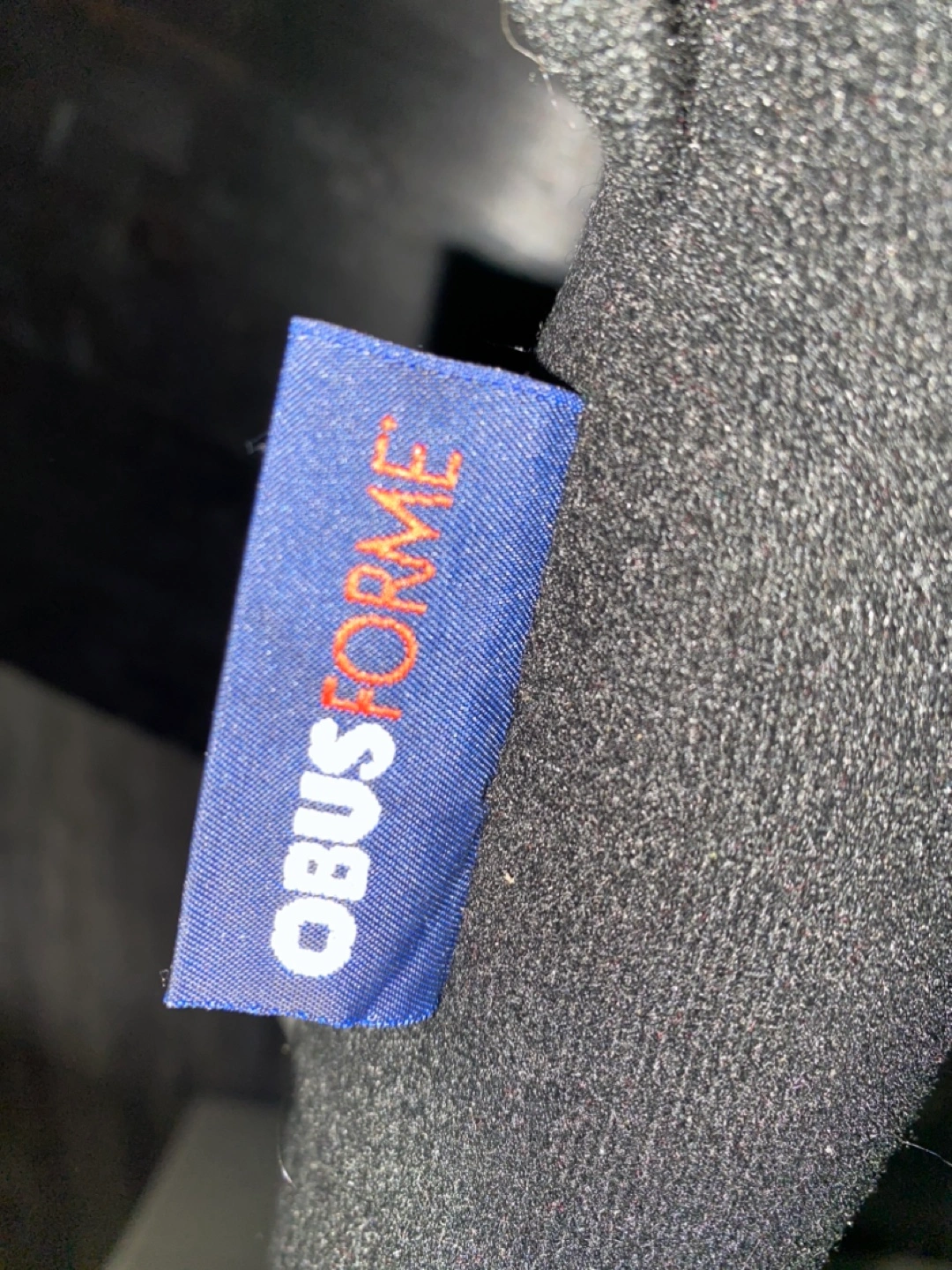 Black back rest support. Appears to have a headrest. Perfect to help you relax after a long day.