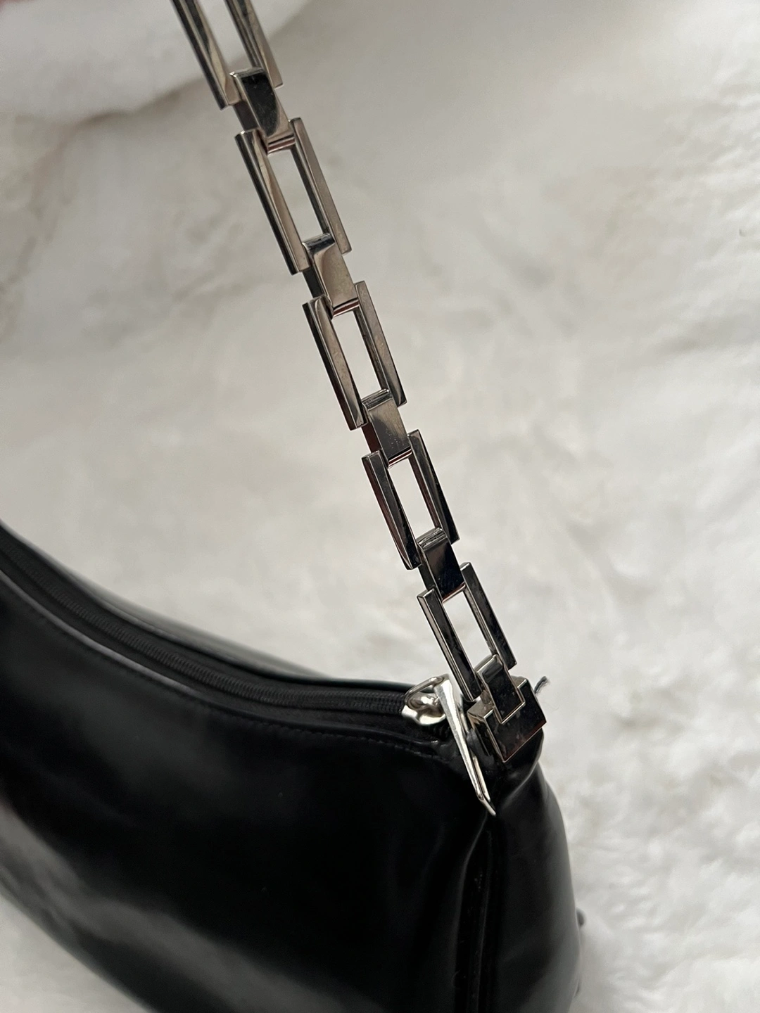 Black baguette style purse. Silver chain strap. Zip closure. A great bag for everyday use, it brings an amazing calmness to your busy day. Brand new and never used 📍Meet ups by Square One