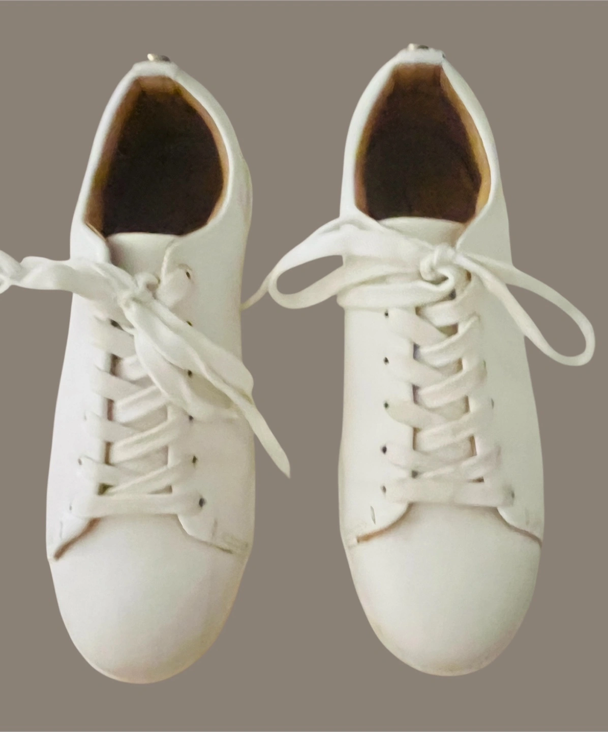 Step into effortless style with these crisp white sneakers, a versatile addition to any wardrobe. Imagine the soft, supple feel of the leather as you slip them on, ready to conquer your day in comfort. The classic lace-up design ensures a secure and customizable fit, while the clean silhouette offers a timeless appeal that pairs seamlessly with any outfit. These sneakers are perfect for adding a touch of casual elegance to your everyday errands, weekend brunch dates, or leisurely strolls through the park. Department: Women Color: White Model: Leather Lace Up Sneakers Upper Material: Leather Features: Comfort, Cushioned, Lightweight, Padded, Lace-Up Style: Sneaker Character: Casual Type: Athletic Great Condition PU Ottawa & Strasburg, Kitchener Keywords: white sneakers, leather sneakers, casual shoes, walking shoes, lace up sneakers, women's sneakers, comfortable sneakers, everyday shoes, fashion sneakers, classic sneakers, white leather shoes, tennis shoes