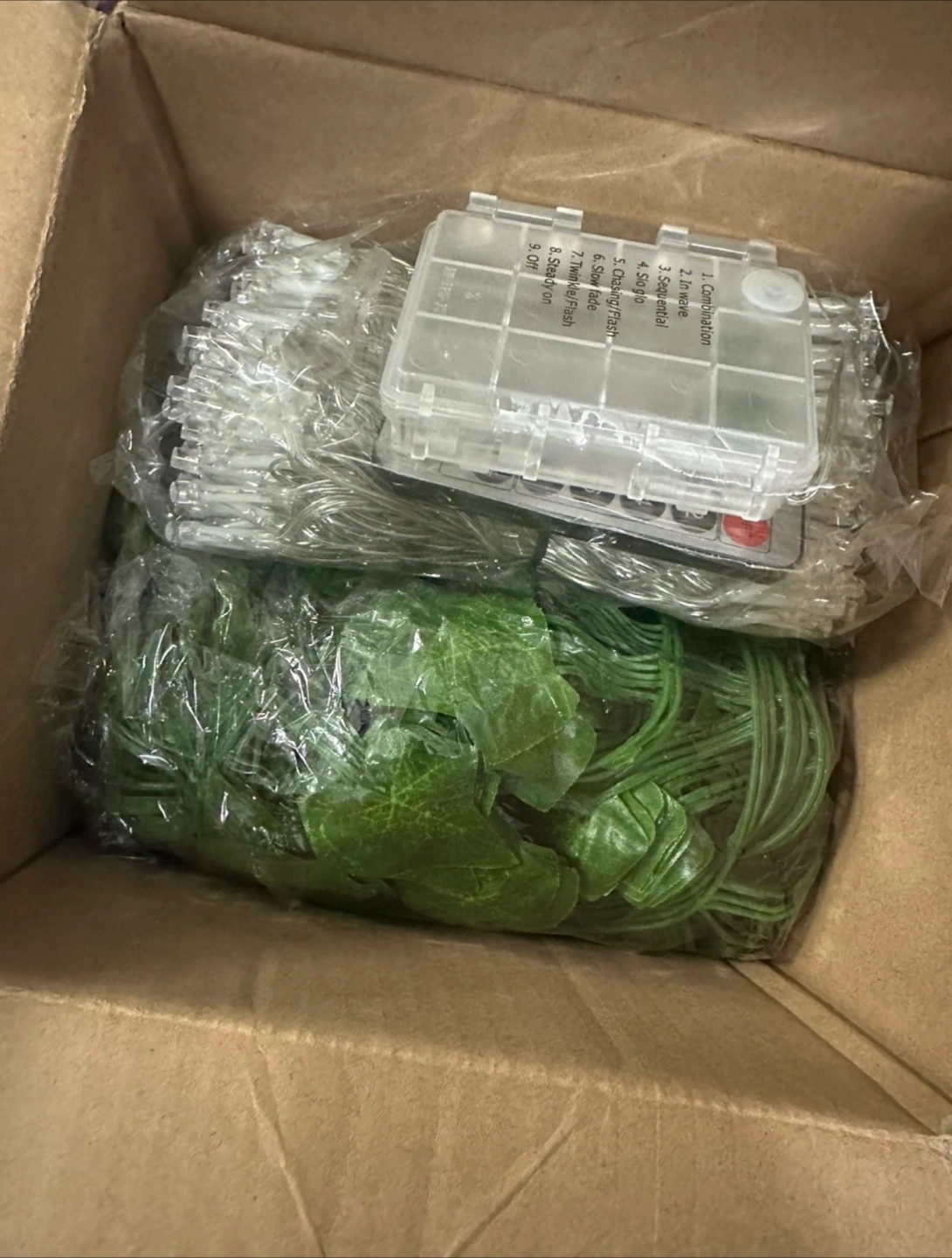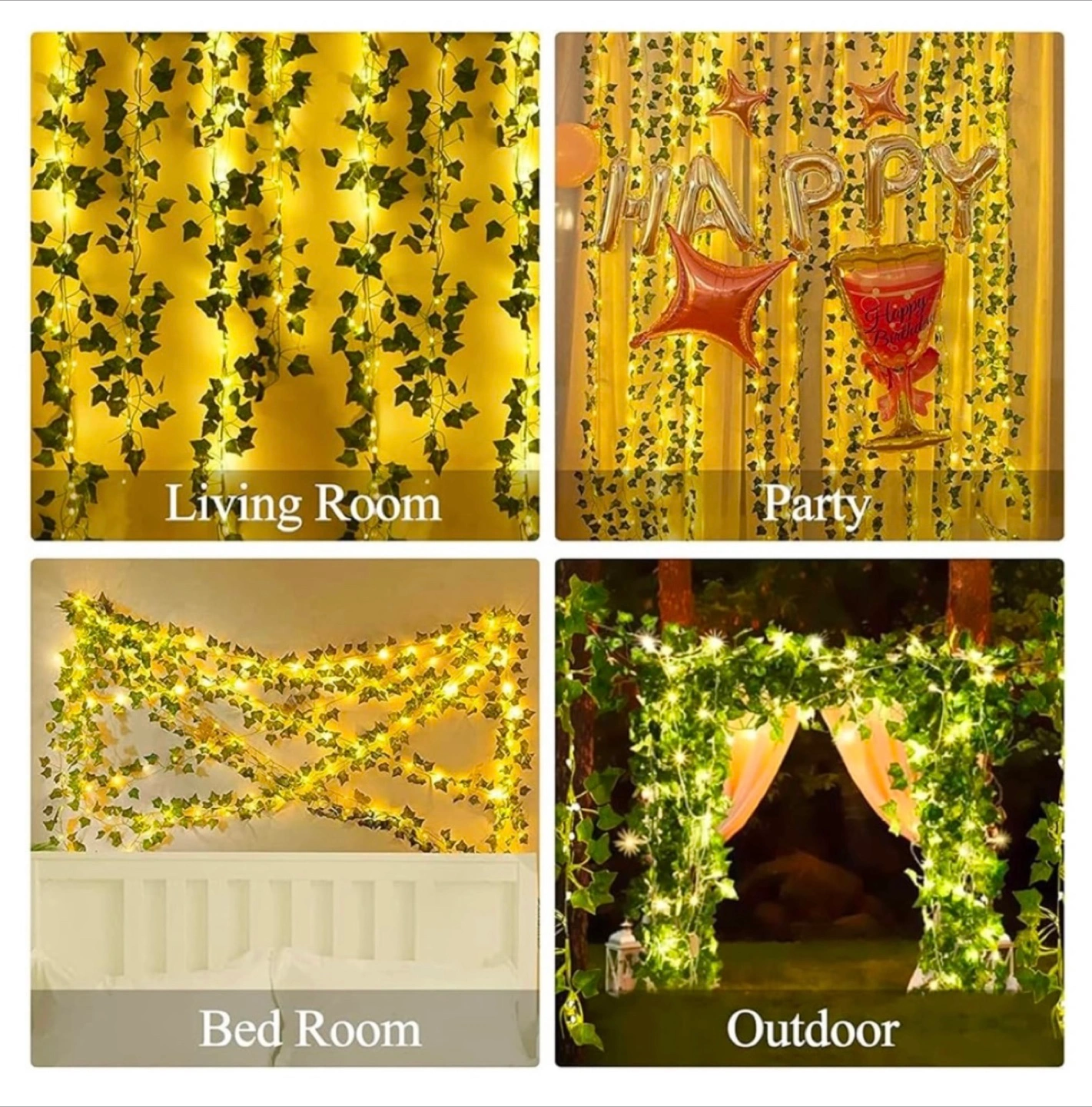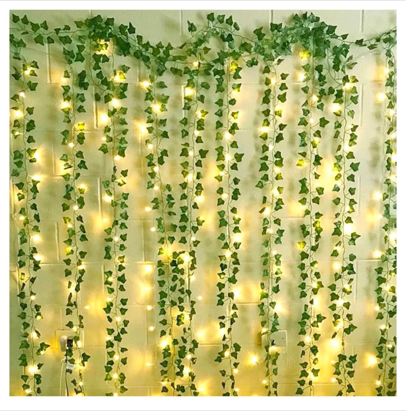 Featuring a string of green vines with warm white lights. Create a soothing ambiance for your living space. Comes with a control for different light functions.