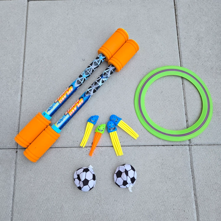 Includes two water pump guns, a frisbee, some water-based accessories, and two soccer balls. A great addition for some fun in the sun.