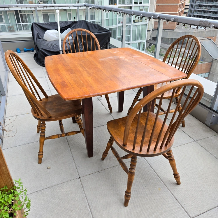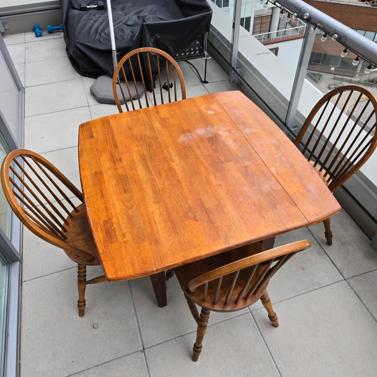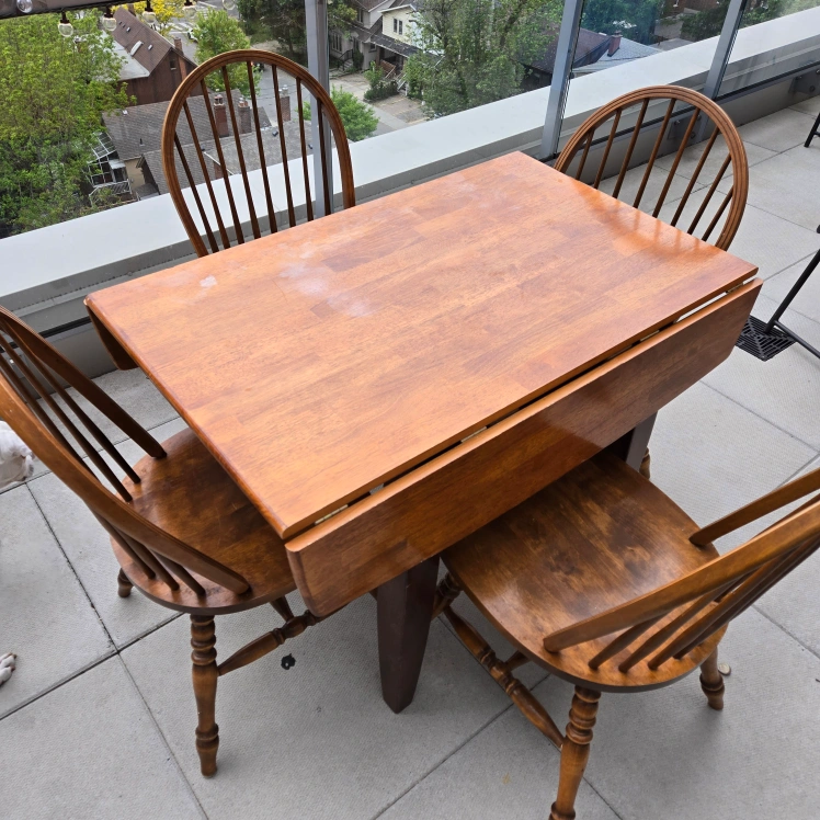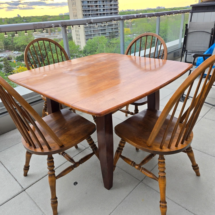 A beautiful wooden table. Comes with four matching chairs. A wonderful way to create a space where you can gather with loved ones.